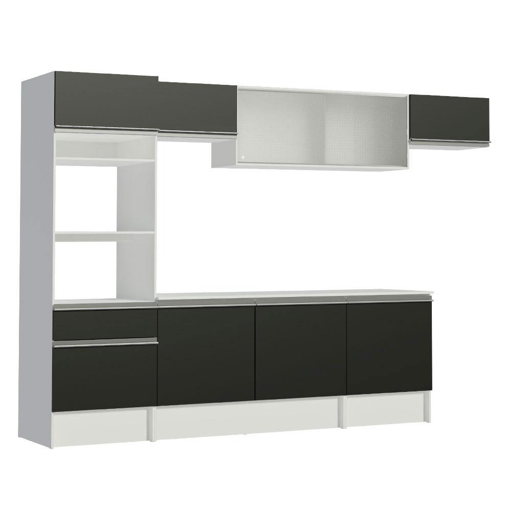 Cozinha Completa Madesa Topazio 300001 com Armário, Balcão e Tampo - Branco/Preto
