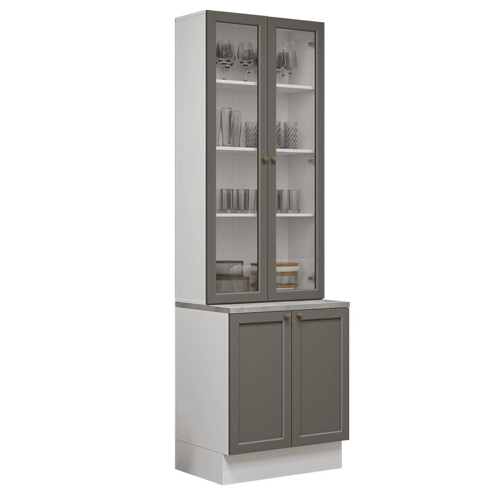 Kit Balcão + Cristaleira 70 cm Branco/Cinza Vik Madesa 02