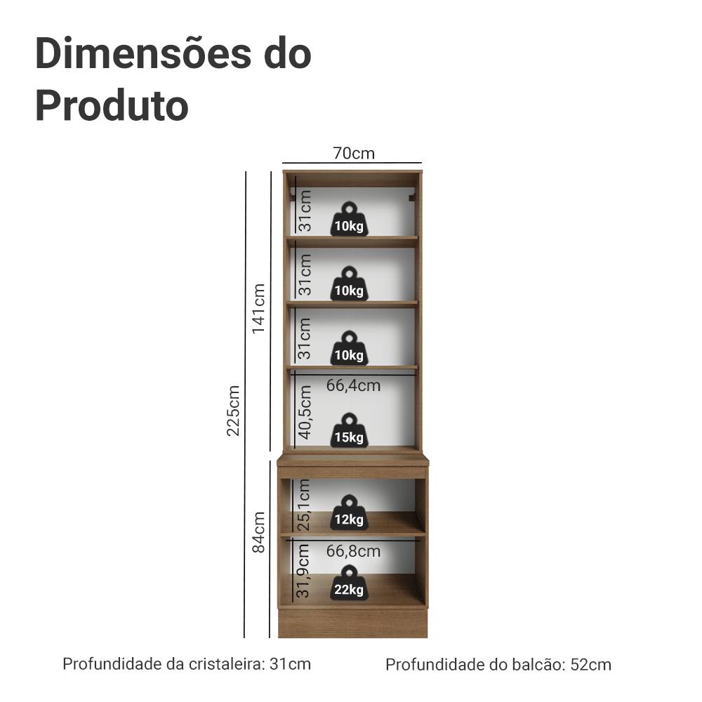 A Cristaleira da Linha Vik da Madesa é o móvel perfeito para quem deseja destacar seus itens mais especiais.Além de agregar sofisticação ao ambiente, ela oferece visibilidade para suas louças, permitindo que você mantenha suas peças favoritas sempre à vista e bem arrumadas. O balcão inferior complementa o conjunto com praticidade e funcionalidade.O acabamento de alta resistência da estrutura é em tom amadeirado Rustic, das frentes em Cinza e possui uma textura suave ao toque. O destaque fica por conta do detalhe chanfrado das frentes, que forma molduras elegantes e dá profundidade ao design, refletindo o estilo americano com um toque moderno. Outro diferencial está nos puxadores ponto em ouro envelhecido, feitos com metal resistente, trazem personalidade e um charme único.Além de trazer elegância, a linha Vik é funcional em cada detalhe. As portas possuem dobradiças com amortecimento, garantindo um fechamento suave e silencioso.Medidas totais:- 225 cm de altura- 70 cm de largura- 52 cm de profundidade no balcão e 31 cm na cristaleiraO que você recebe:- Uma (1) Cristaleira com duas (2) portas- Um (1) Balcão com duas (2) portas e tampoCódigo do produto: GRVK070002F9É importante saber:- A cristaleira não acompanha pés nem kit para suspender na parede. Deve ser instalada sobre o balcão e fixada na parede.- As imagens são meramente ilustrativas; a decoração não acompanha o produto.- Material: MDP- A Madesa não oferece serviço de montagem.- Produto acompanha manual e ferragens necessárias.A Madesa se dedica à sustentabilidade com várias iniciativas: temos uma usina própria que gera energia para uma das fábricas. Priorizamos fornecedores responsáveis com o meio ambiente. Todo o plástico utilizado na produção é reciclado, e as sobras também são reaproveitadas. Investimos no desenvolvimento de nossos colaboradores e em ações que beneficiem a comunidade.