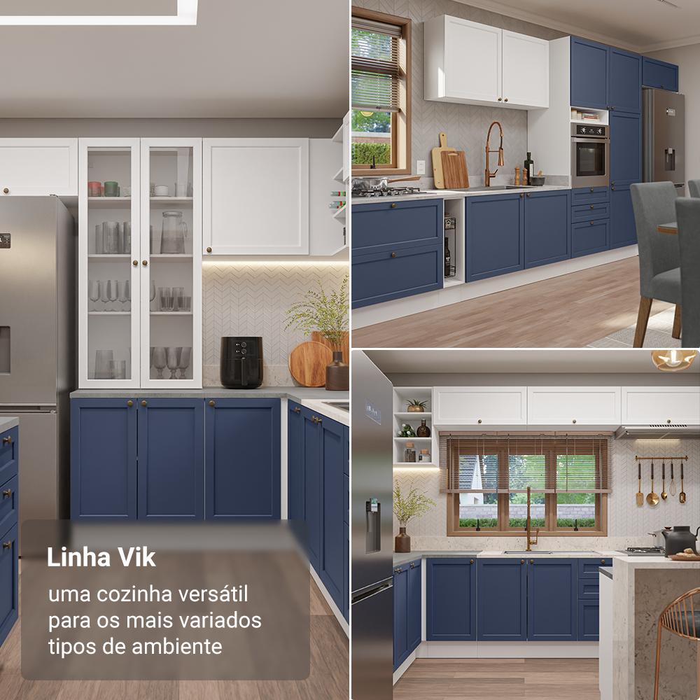 Kit Balcão + Cristaleira 70 cm Branco/Azul/Branco Vik Madesa 02