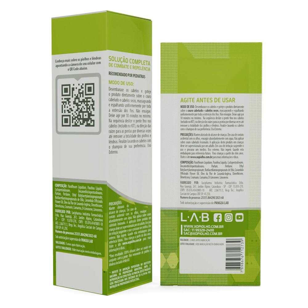 Kit Completo de Combate de Piolhos e Lêndeas O Tratamento Antipiolho Definitivo Recomendado por Pediatras e Dermatologistas- Elimina por completo infestações intensas e persistentes de piolhos e lêndeas.  - Inovação em âmbito mundial para eliminar por completo as infestações intensas ou recorrentes de piolhos e lêndeas através de uma touca multicamadas produzidas com material estéril hospitalar, de uso simples, com total segurança e conforto para as crianças, através da simples colocação da touca na cabeça, seguido de massagem.- Embebida em uma solução natural a base de silicones de grau cosmético, acrescida de óleos essenciais de Lavanda e Melaleuca, e ainda Aloe Vera (Babosa).Fórmula vegana com ingredientes da agricultura BIO.  XÔ PIOLHO Uma aplicação... 10 minutos... e... Xô Piolho!Indicado para uso aos primeiros sinais de infestações, porque piolho não é coisa da sua cabeça! XÔ PIOLHO BLISS é uma solução completa na forma de um KIT muito fácil e rápido de seu usar, totalmente seguro e isento de ingredientes tóxicos ou agressivos, que elimina e extingue a totalidade dos piolhos e lêndeas numa única aplicação de forma natural.