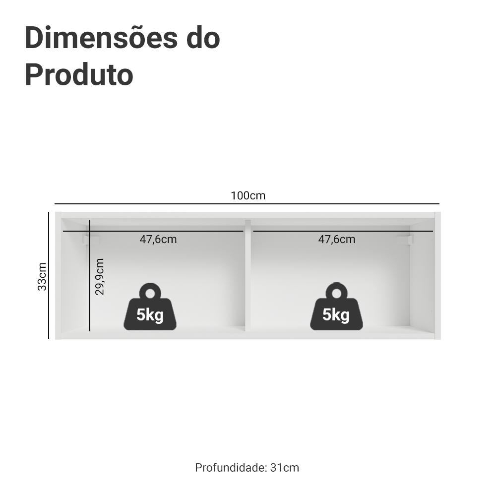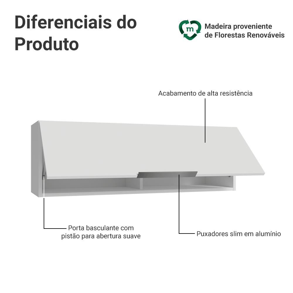 O armário aéreo com porta basculante é a escolha ideal para quem busca praticidade e elegância no dia a dia.A porta basculante conta com um sistema de pistão a gás, que a mantém suspensa quando aberta, garantindo mais segurança e praticidade. Com acabamento branco de alta resistência e puxador slim em alumínio, que confere um toque de sofisticação ao produto.A Linha Neo da Madesa foi desenvolvida para oferecer soluções planejadas e inteligentes, unindo funcionalidade e estilo em cada detalhe. Módulos versáteis que se adaptam a diferentes tamanhos de quarto, permitindo criar um ambiente moderno e totalmente funcional. Além disso, é fácil de combinar com outros módulos da linha, proporcionando um design elegante.Medidas totais:- 33 cm de altura- 100 cm de largura- 31 cm de profundidadeInformações técnicas:- Material: MDP- Peso suportado: 10kgO que você recebe:- Um Armário Aéreo com uma porta basculanteCódigo do produto: MDDR01002709É importante saber:- Imagens meramente ilustrativas, a decoração não acompanha o produto- A Madesa não disponibiliza serviço de montagem- O produto segue com manual de instalação e todas as ferragens necessárias para sua montagemA Madesa possui compromisso com a sustentabilidade. Geramos energia limpa em nossa própria usina, priorizamos fornecedores responsáveis e utilizamos plástico reciclado em nossa produção. Além disso, reinserimos sobras no ciclo de reciclagem e investimos no desenvolvimento de nossos colaboradores e da comunidade.Garantia: Este produto conta com 1 ano de garantia total, sendo 3 meses de garantia legal e 9 meses de garantia contratual. A garantia cobre exclusivamente defeitos de fabricação e vícios ocultos. Não estão cobertos: problemas decorrentes de montagem incorreta, uso inadequado, exposição à umidade, calor ou luz solar direta, modificações no produto ou desgaste natural.