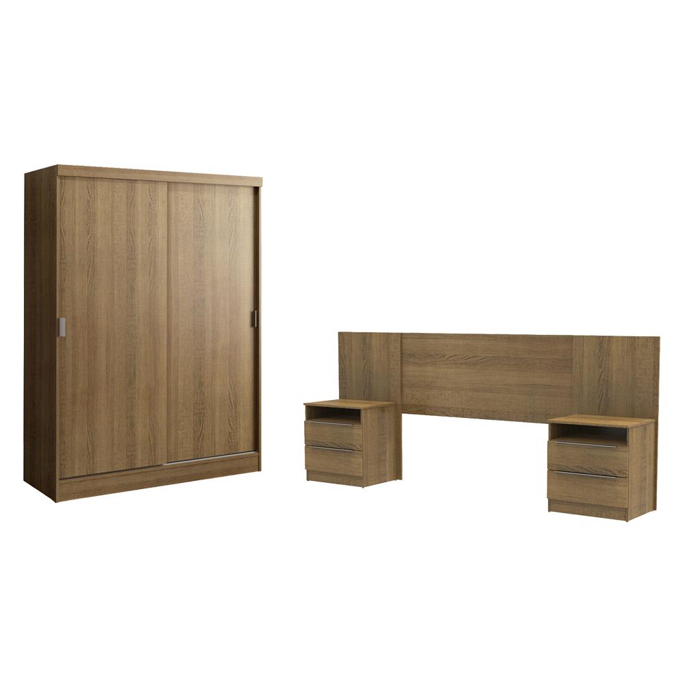 Quarto Completo com Guarda Roupa Luke e Cabeceira com 2 Mesas Laterais Madesa - Rustic
