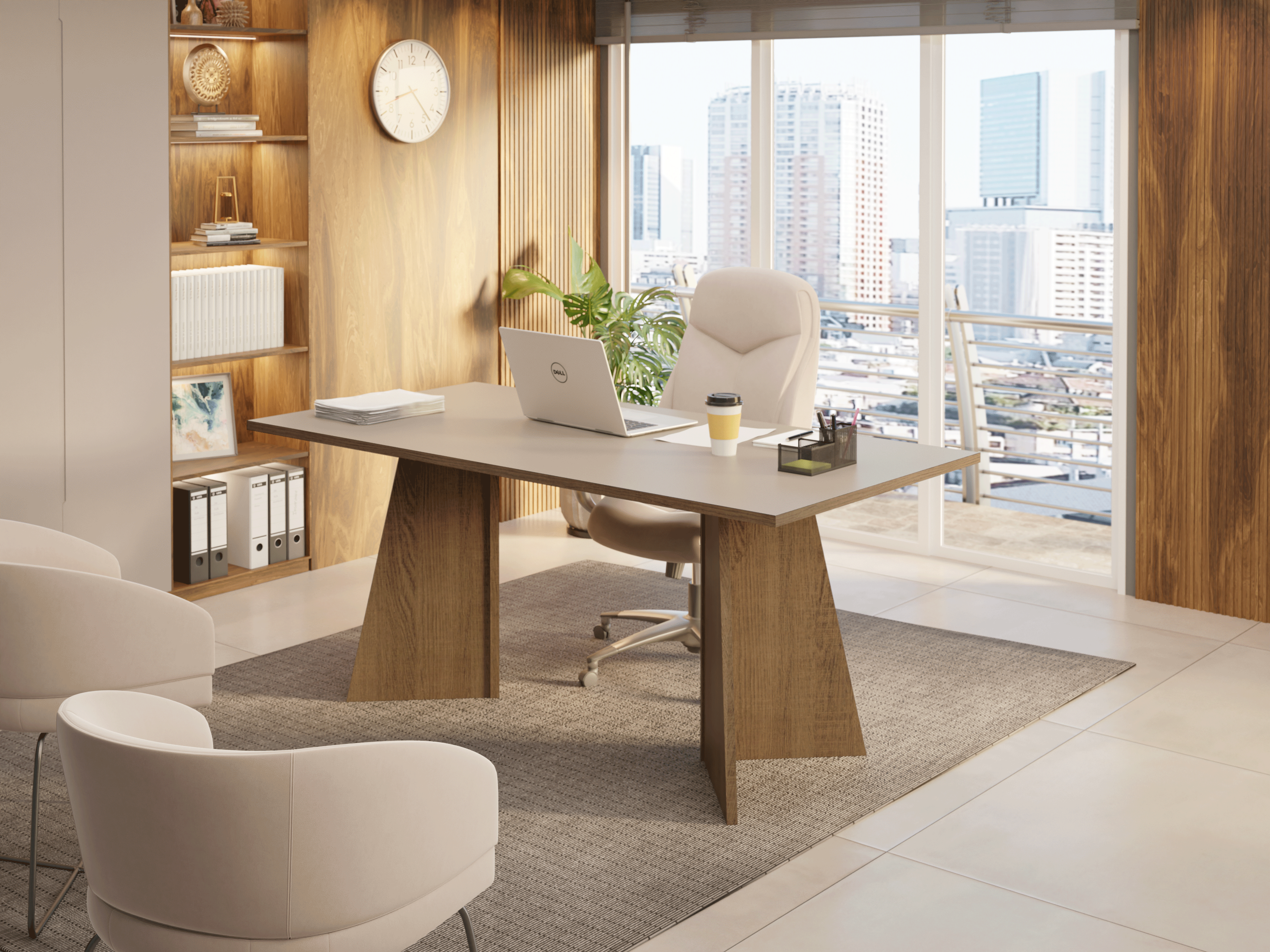 Desenvolvida para quem busca sofisticação e eficiência no ambiente corporativo. A Mesa oferece amplo espaço para acomodar computador, documentos e acessórios de trabalho, garantindo conforto e organização ao longo do dia.A base em formato trapézio proporciona firmeza e design diferenciado. A combinação perfeita entre funcionalidade e estilo, ideal para escritórios de diretoria ou presidência que valorizam ambientes profissionais.O acabamento une o tom amadeirado Rustic com o tom Crema, criando um contraste sofisticado e atemporal. Com design marcante e estrutura resistente, é o móvel perfeito para transmitir elegância em qualquer espaço corporativo.Medidas totais:- 78 cm de altura- 180 cm de largura- 90 cm de profundidadeO que você recebe- Uma mesa de Escritório com tampo em MDPCódigo do produto: MDFC010010J8É importante saber:- Material: MDP- Imagens meramente ilustrativas, a decoração não acompanha o produto- A Madesa não disponibiliza serviço de montagem- O produto segue com manual de instalação e todas as ferragens necessárias para sua montagemA Madesa se dedica à sustentabilidade com várias iniciativas: temos uma usina própria que gera energia para uma das fábricas. Priorizamos fornecedores responsáveis com o meio ambiente. Todo o plástico utilizado na produção é reciclado, e as sobras também são reaproveitadas. Investimos no desenvolvimento de nossos colaboradores e em ações que beneficiem a comunidade.