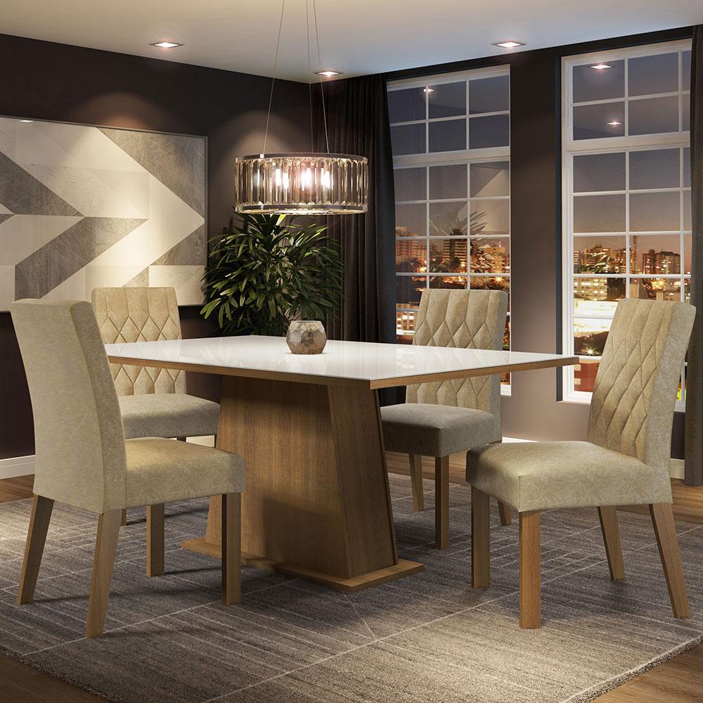 Conjunto Sala de Jantar Mesa Tampo de Vidro 4 Cadeiras Rustic/Branco/Imperial Aryeli Madesa
