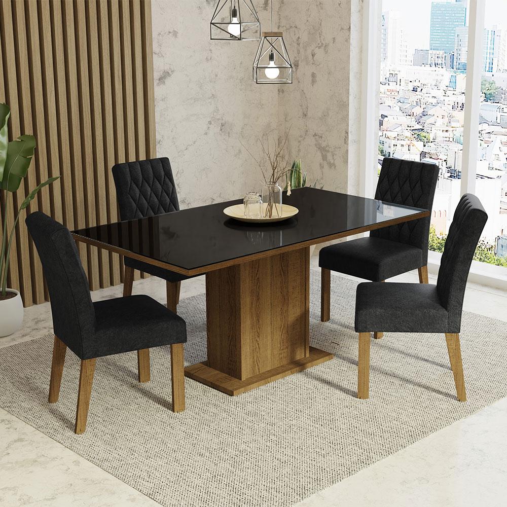 Conjunto Sala de Jantar Mesa Tampo de Vidro 4 Cadeiras Rustic/Preto/Oxford Marilia Madesa