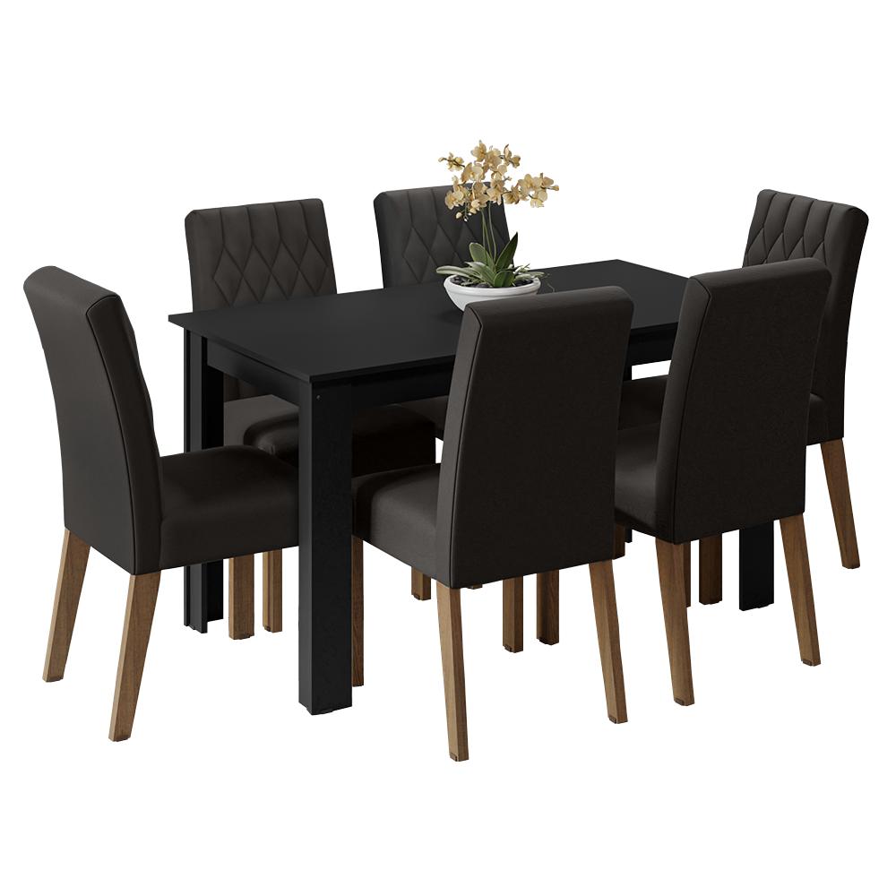 Conjunto Sala de Jantar Mesa Tampo de Madeira 6 Cadeiras Rustic/Preto/Oxford Allegro Madesa