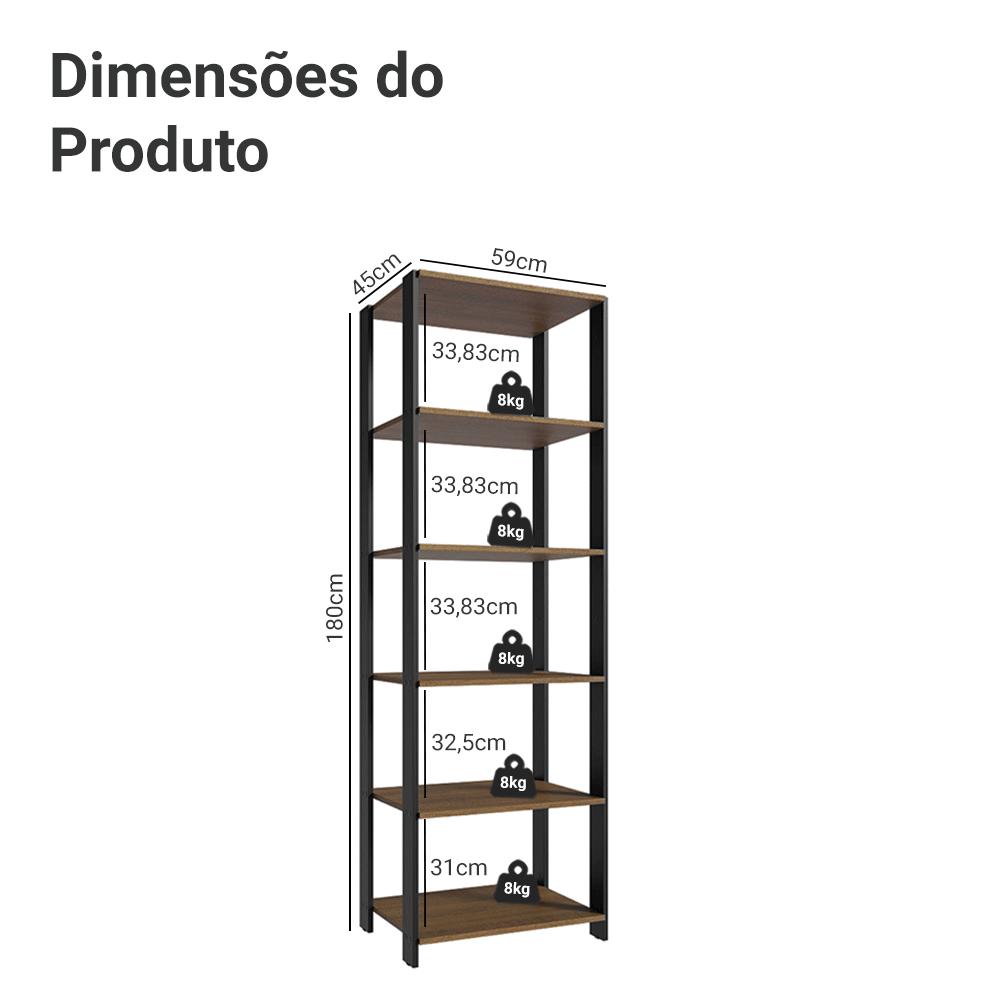 Armário Estante Multiuso Organizador 5 Prateleiras 59cm Rustic/Preto Madesa