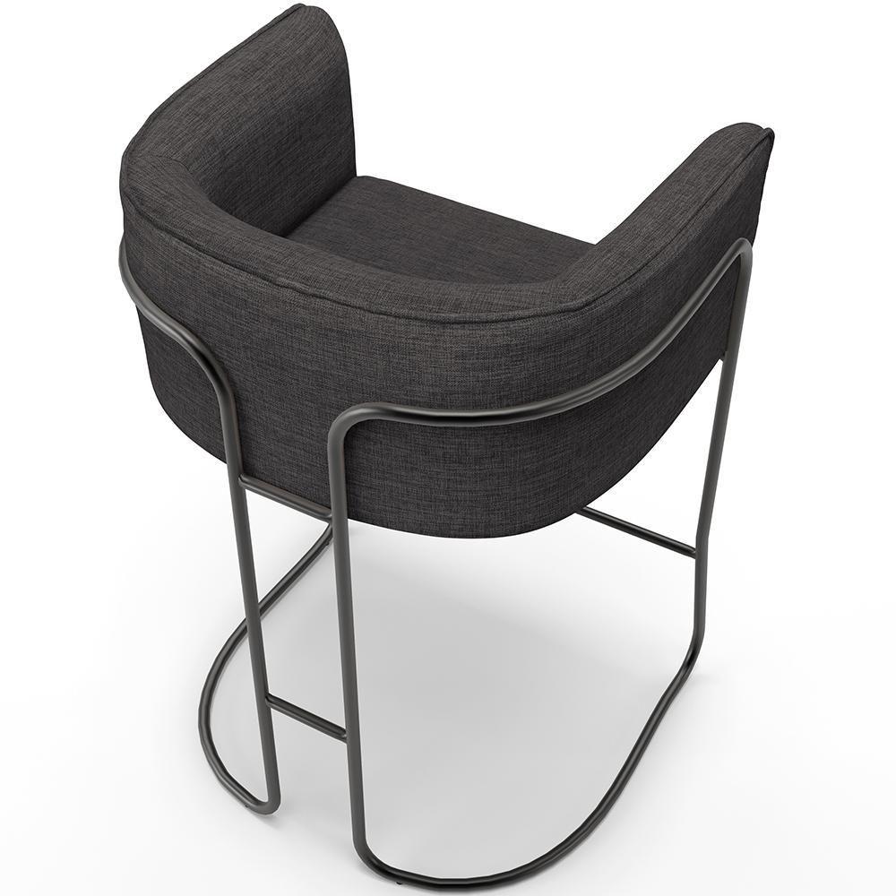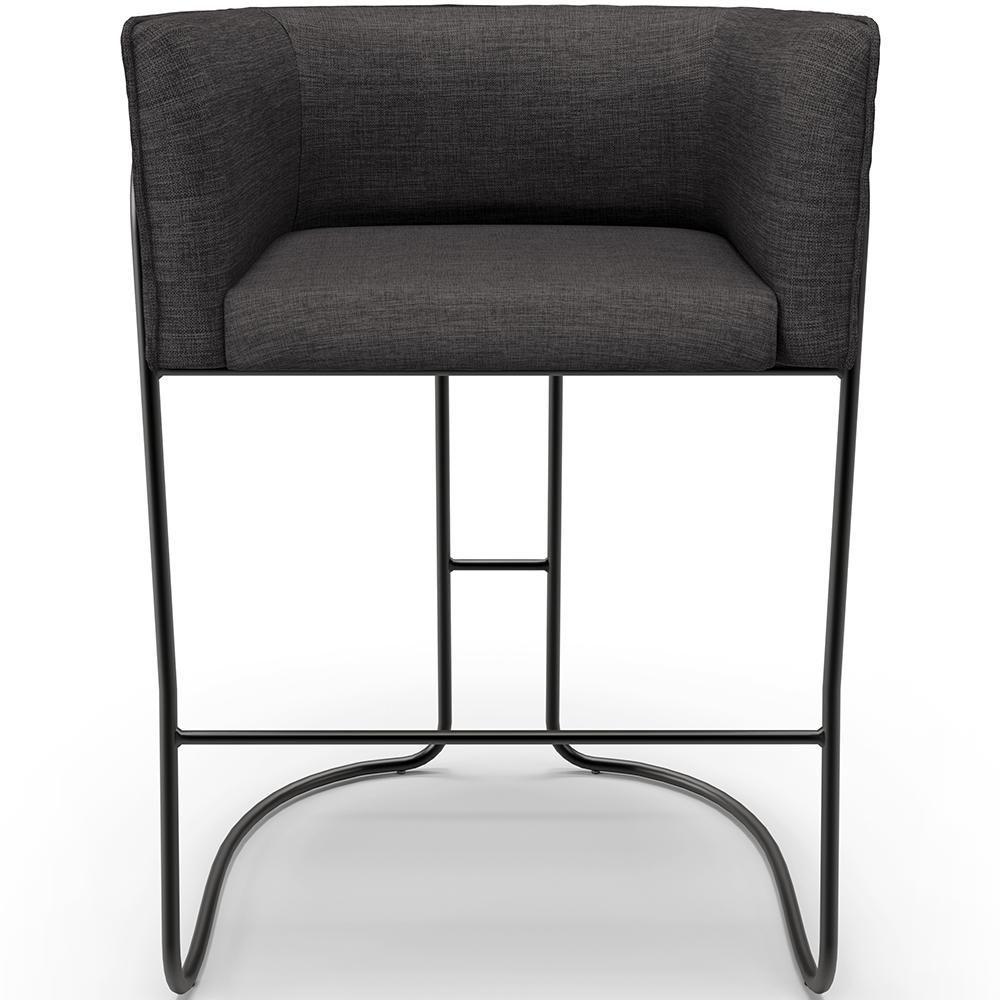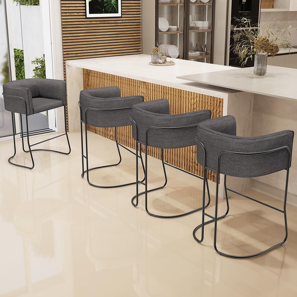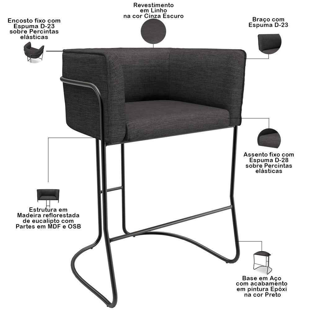 Kit 04 Banquetas Baixa Base De Aço Preto Betina D02 Linho Cinza Escuro C-416 - Lyam Decor