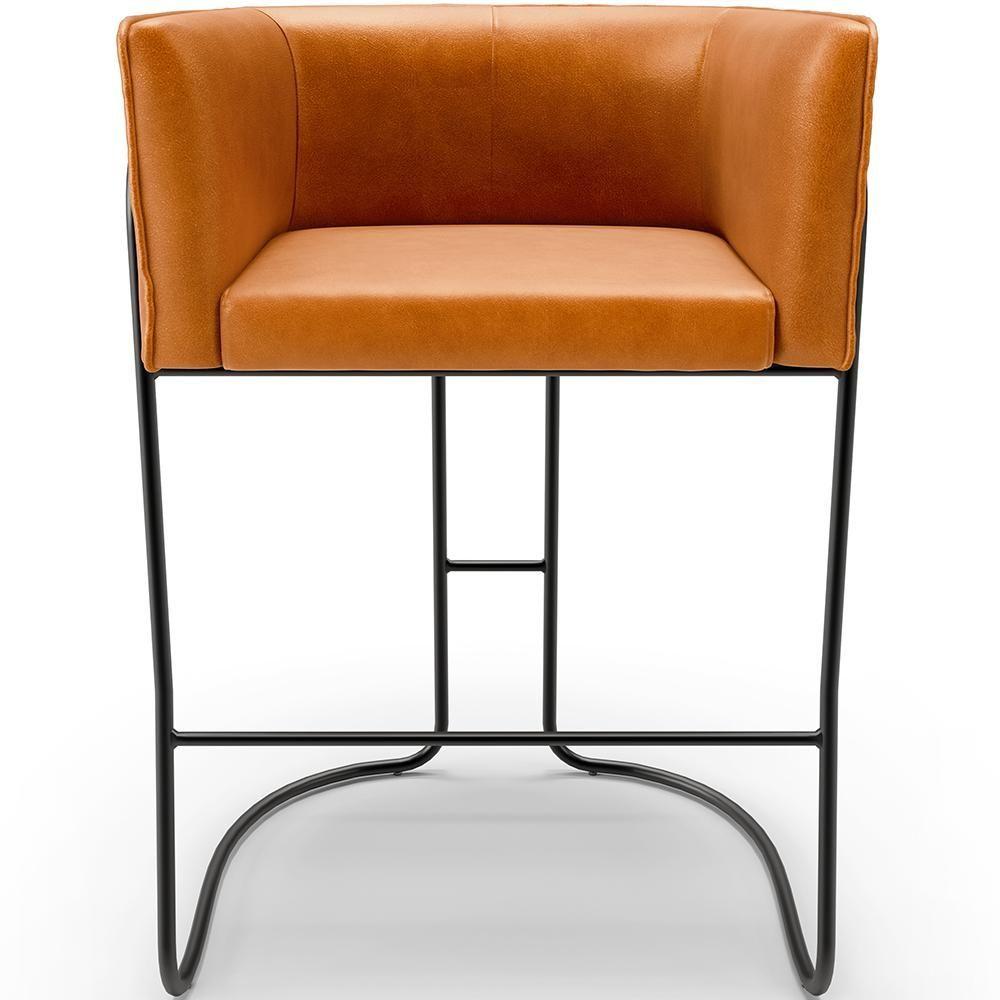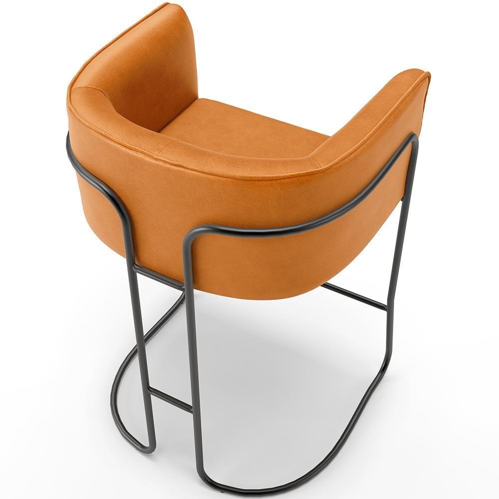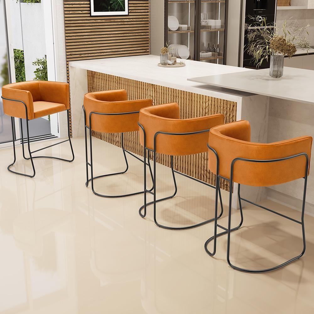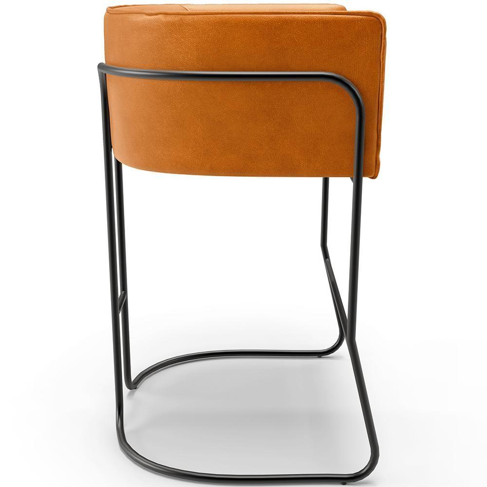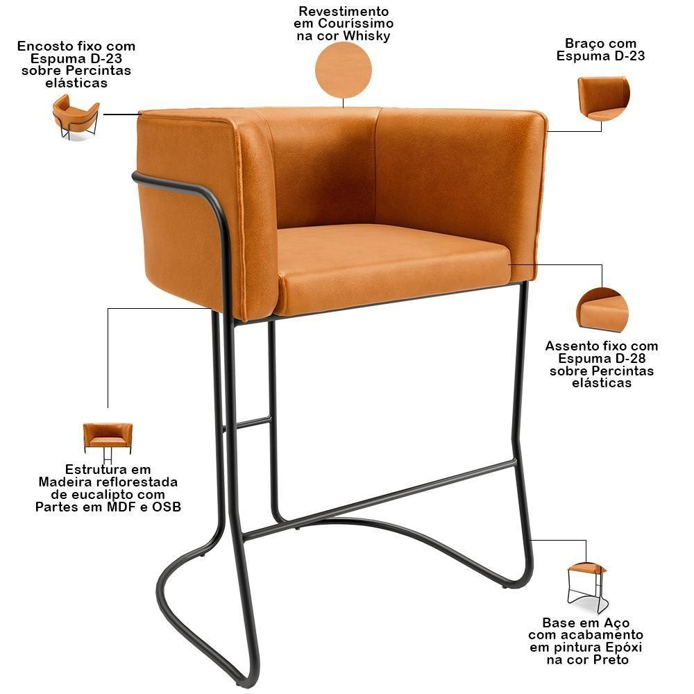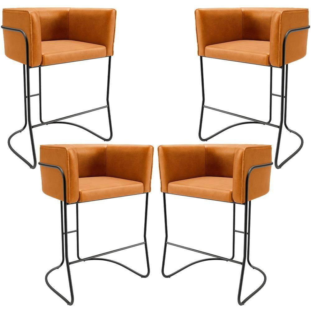 Kit 04 Banquetas Baixa Base De Aço Preto Betina D02 Couríssimo Whisky B-90 - Lyam Decor