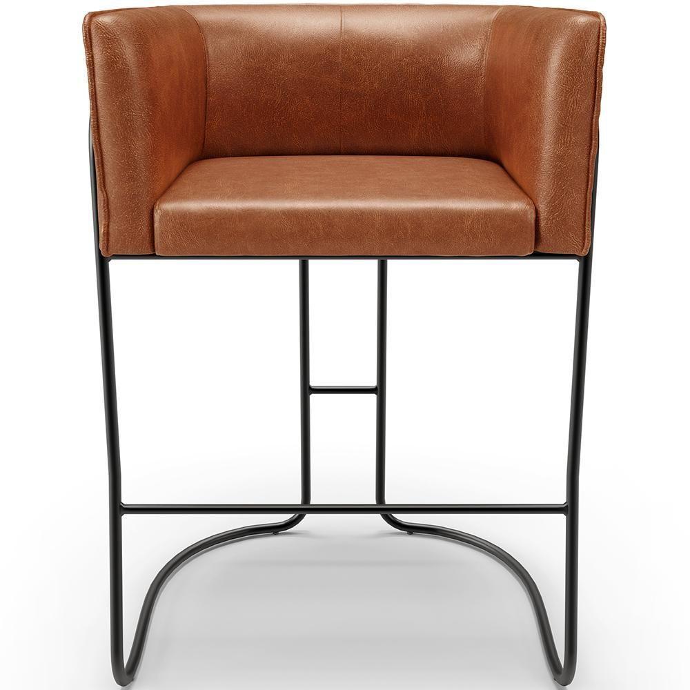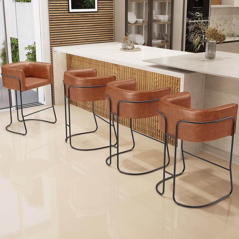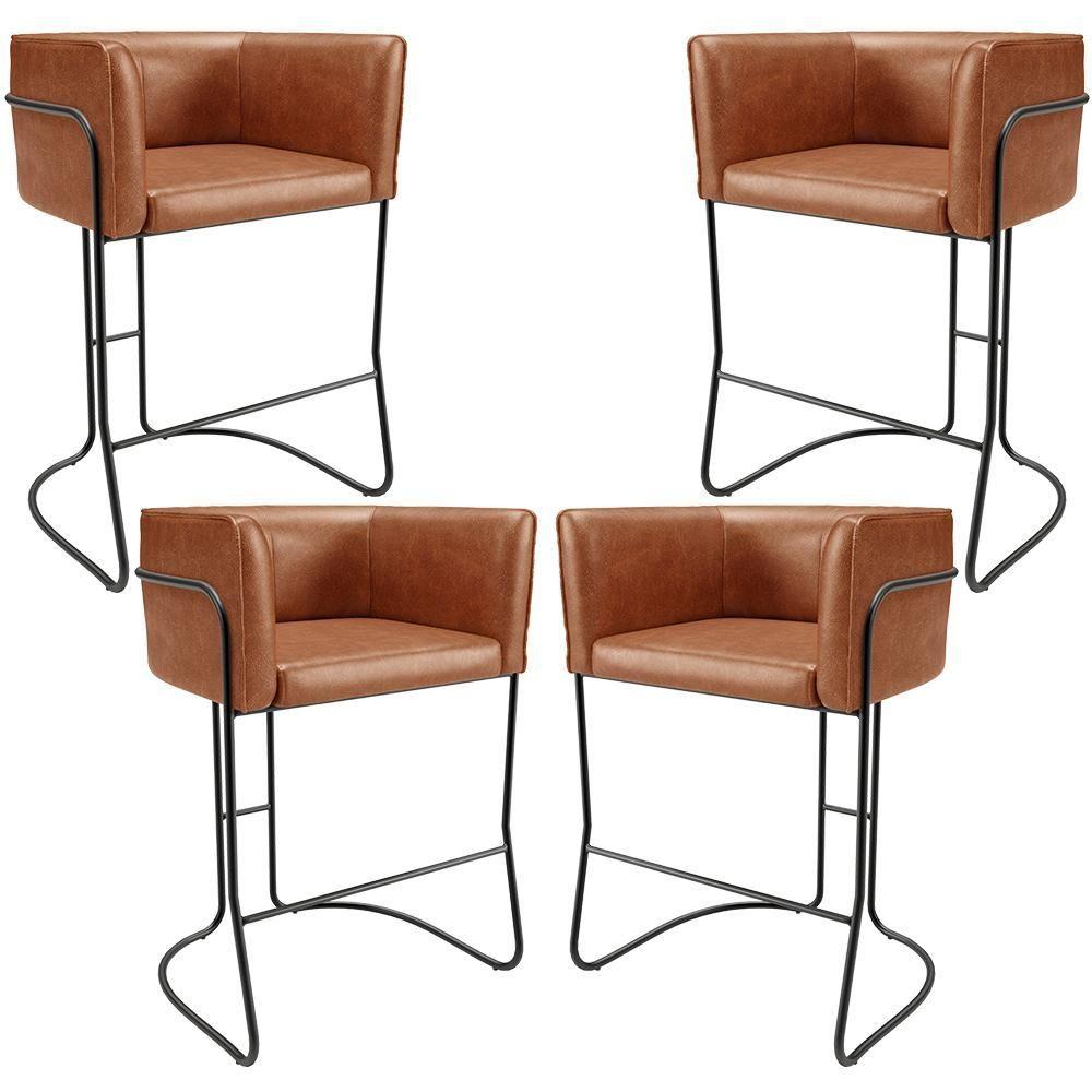 Kit 04 Banquetas Baixa Base De Aço Preto Betina D02 Couríssimo Camel B-14 - Lyam Decor