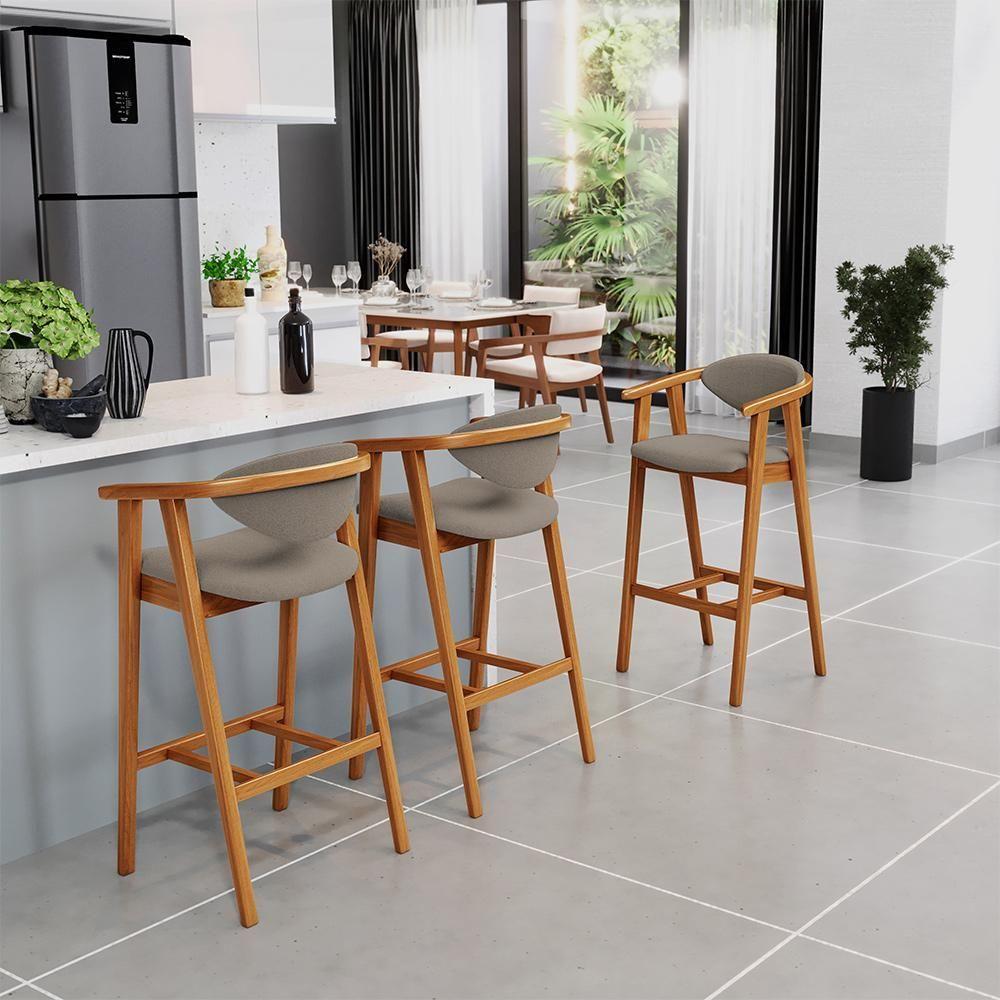 Kit 04 Banquetas Alta Para Cozinha Bancada Bar Sala De Jantar Fixa Cecília L02 Bouclê Bege
