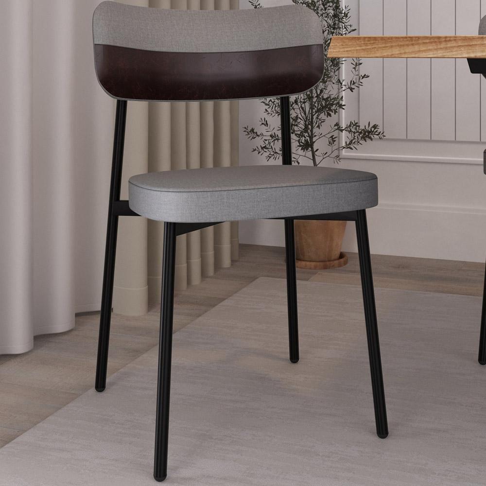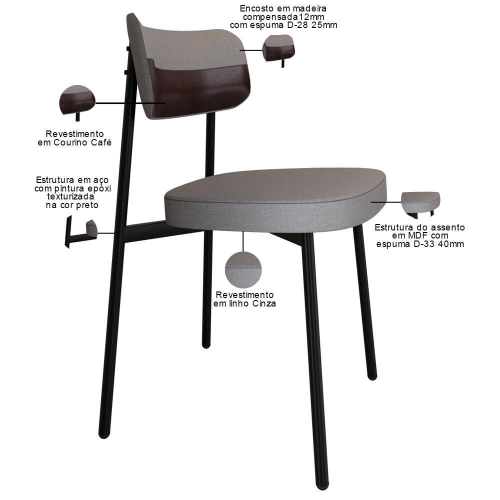 Cadeira Estofada Para Sala De Jantar Astrid Preto C01 Linho Cinza Courino Café - Lyam Decor