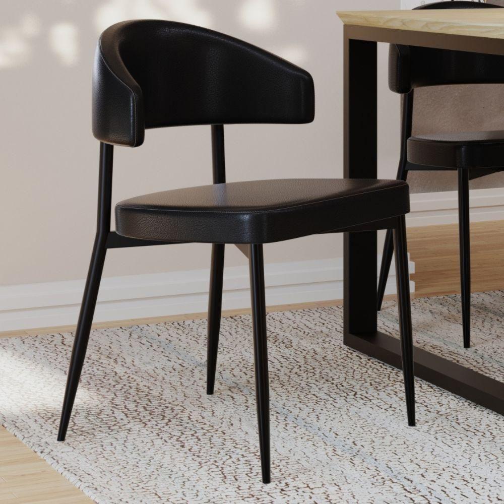 Cadeira Estofada Para Sala De Jantar Serena Preto C01 Courino Preto - Lyam Decor