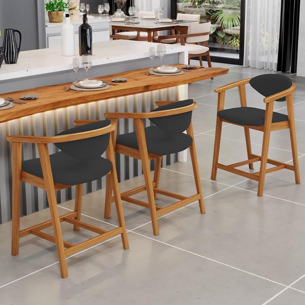 Kit 04 Banquetas Baixa Para Cozinha Sala Jantar Bancada Cecília L02 Suede Preto - Lyam Decor