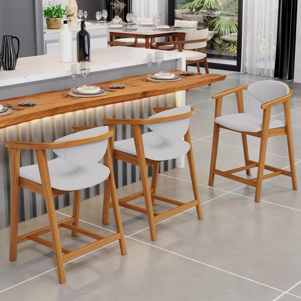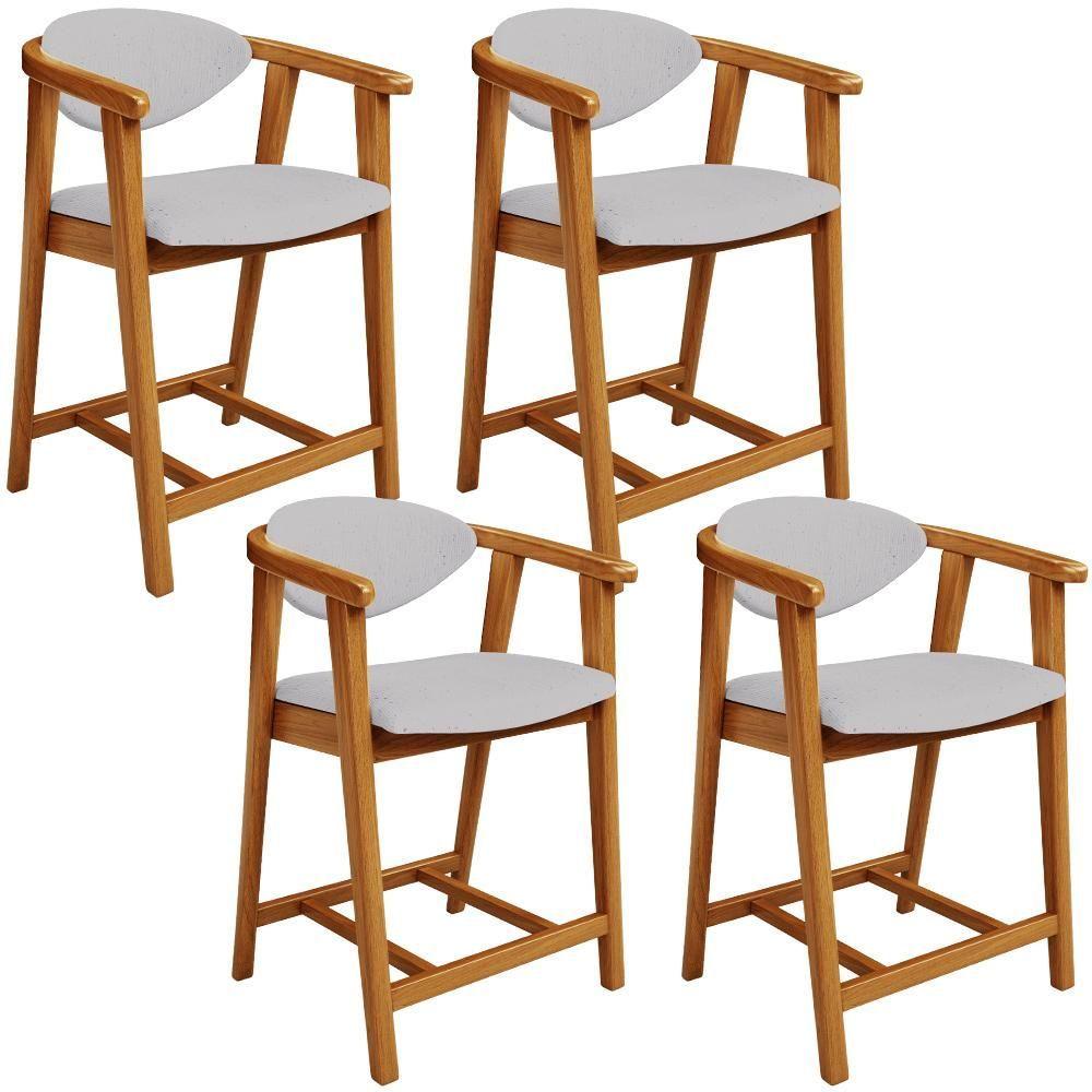 Kit 04 Banquetas Baixa Para Cozinha Sala Jantar Bancada Cecília L02 Linho Cinza - Lyam Decor