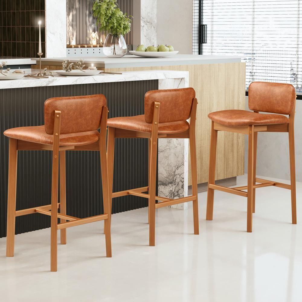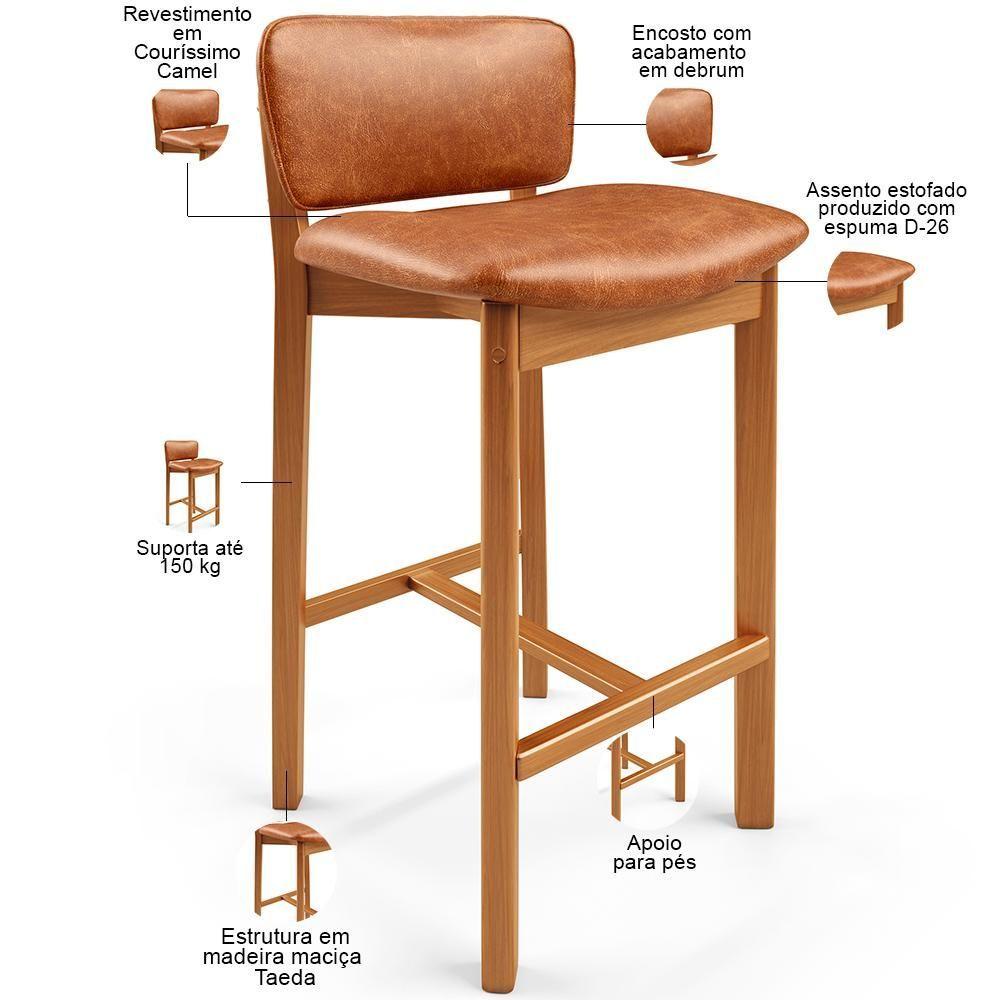 Kit 06 Banquetas Alta Para Cozinha Sala De Jantar Bar Dara L02 Couríssimo Camel - Lyam Decor