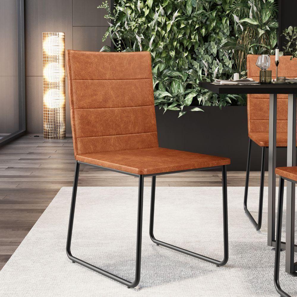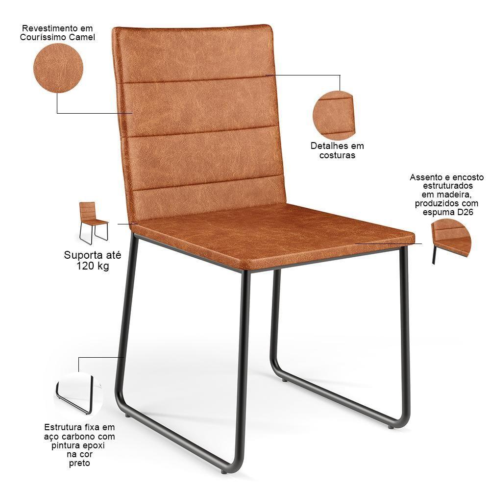Cadeira Decorativa Estofada Para Sala De Jantar Preto Maya L02 Couríssimo Camel - Lyam Decor Decor