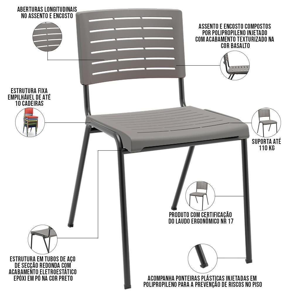 Kit 02 Cadeiras Empilhável Fixa Escritório Multiuso Base Preta Kimi P03 Basalto - Lyam Decor