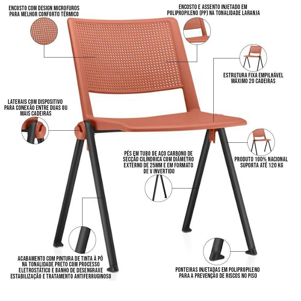 Cadeira Empilhável Fixa Lift F02 Base Aço Preto Laranja - Lyam Decor