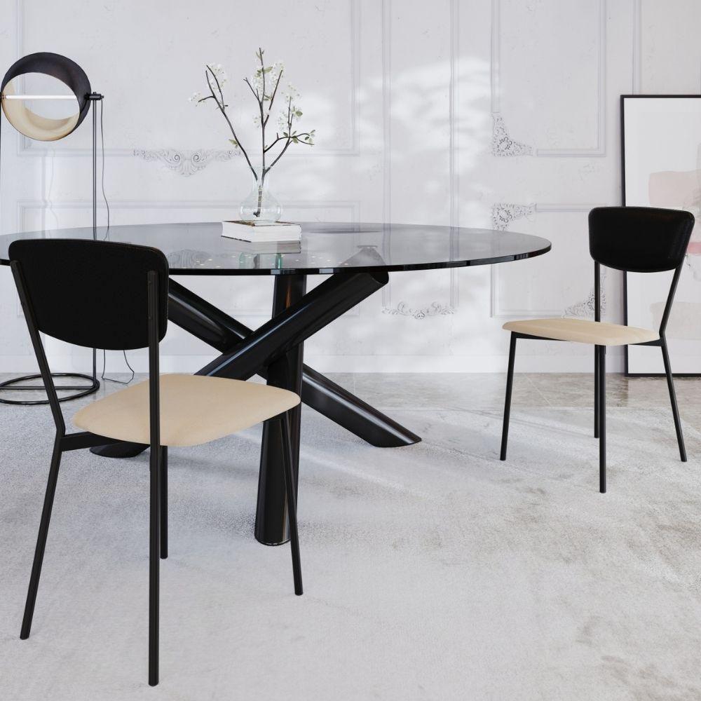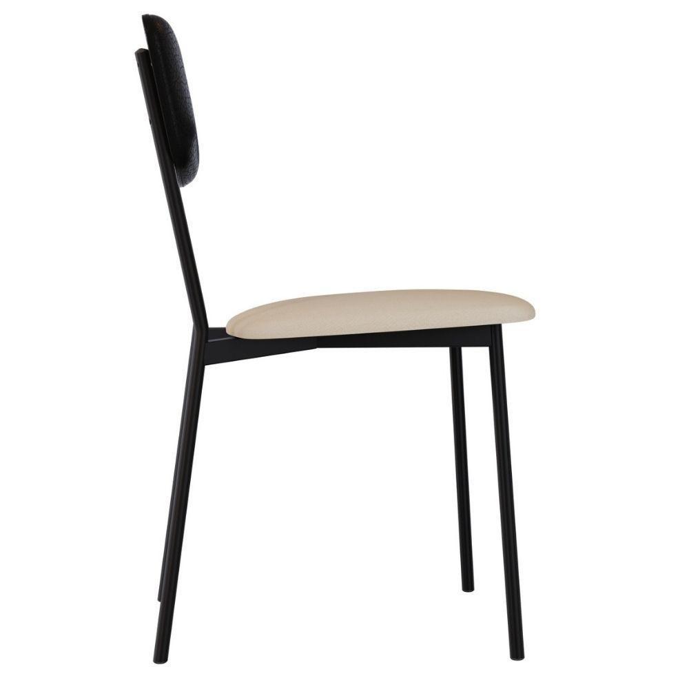 Cadeira Estofada Para Sala De Jantar Village Preto C01 Linho Areia Courino Preto - Lyam Decor