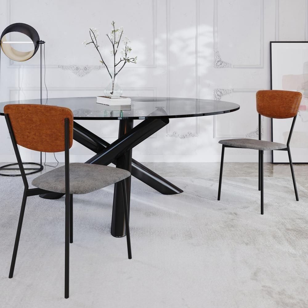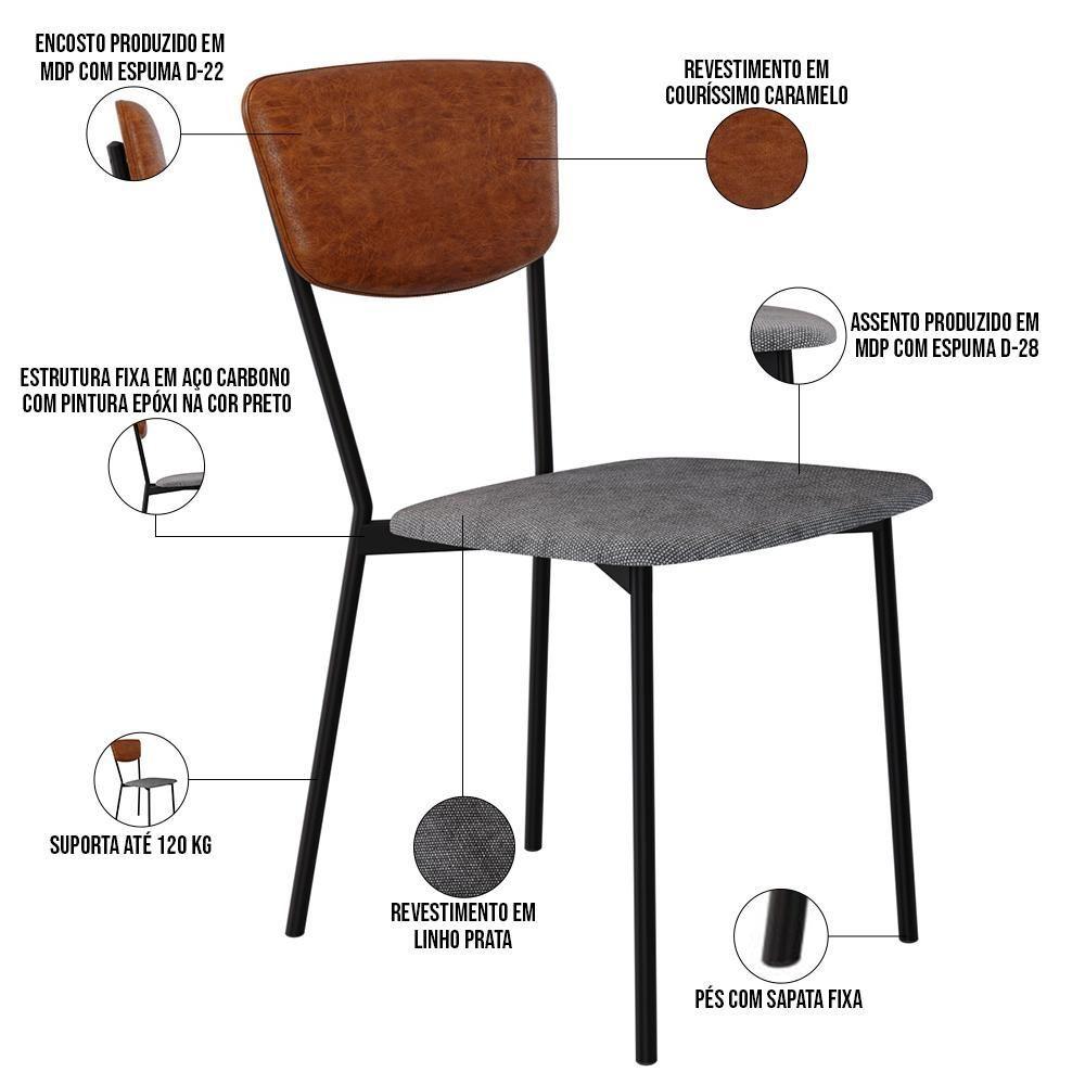Cadeira Estofada Para Sala De Jantar Village Preto C01 Linho Prata Courino Caramelo - Lyam Decor
