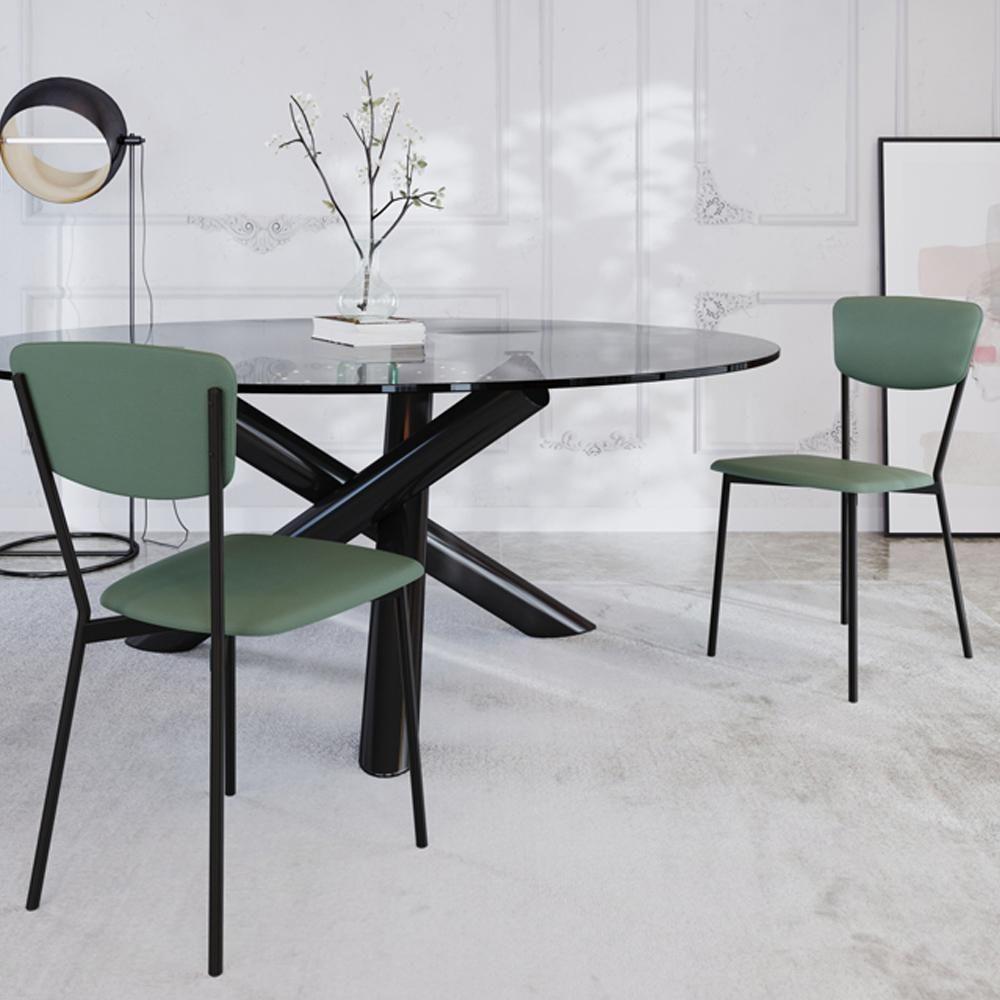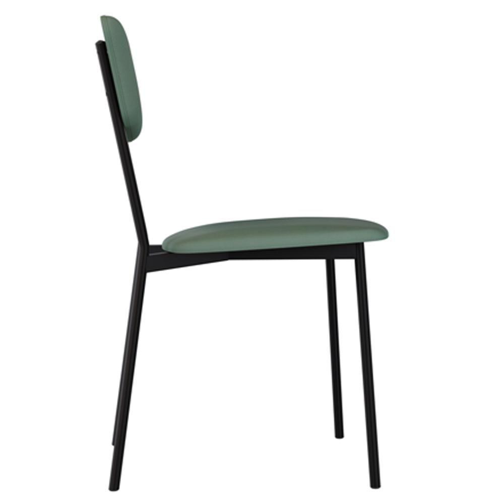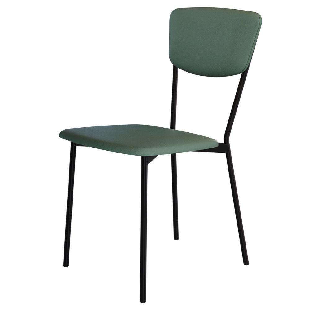 Cadeira Estofada Para Sala De Jantar Village Preto C01 Courino Verde Sálvia - Lyam Decor