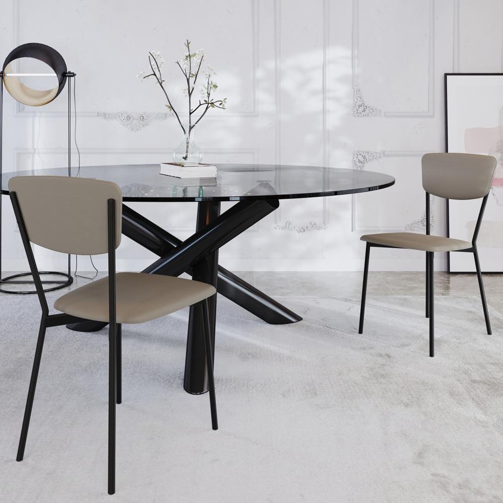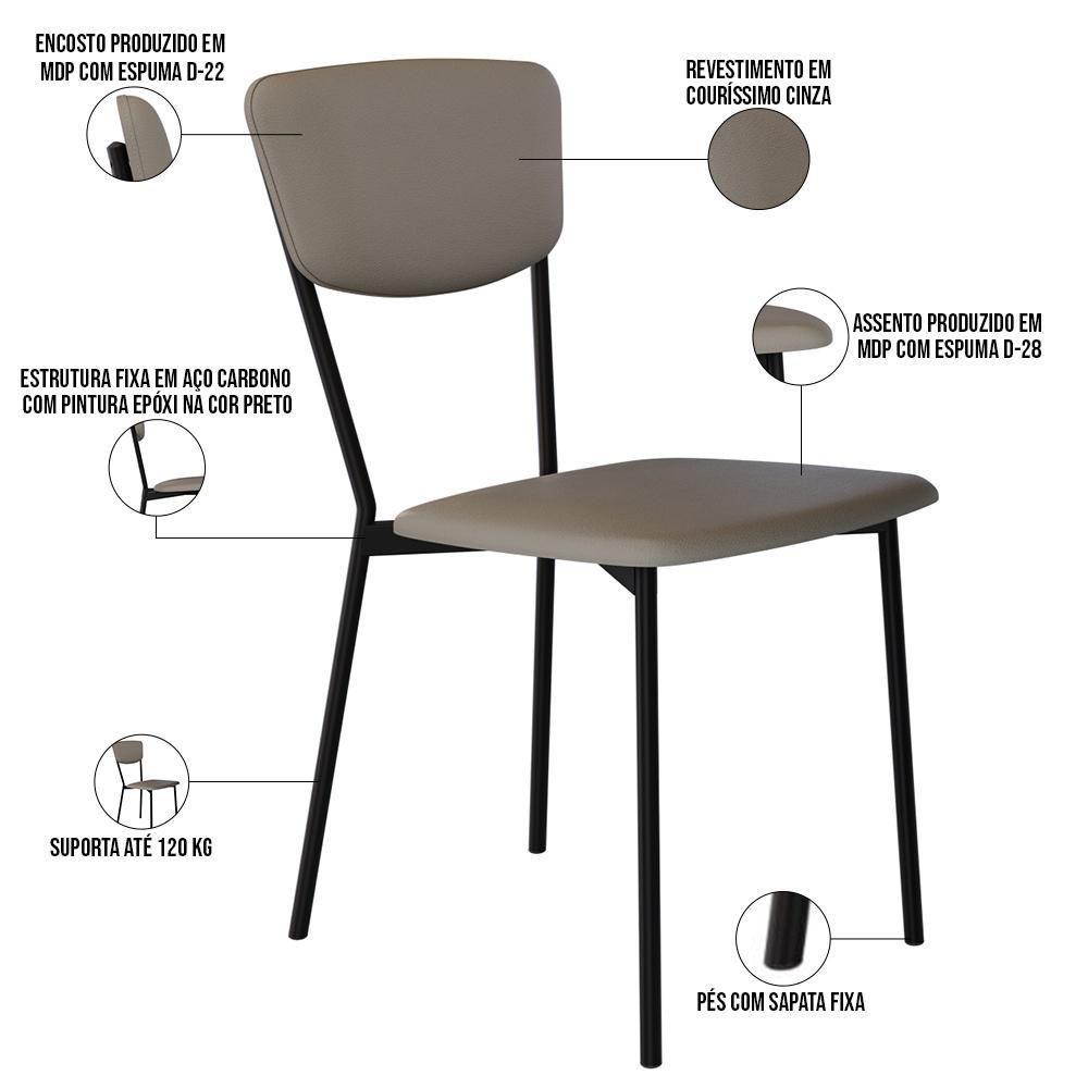 Cadeira Estofada Para Sala De Jantar Village Preto C01 Courino Cinza - Lyam Decor
