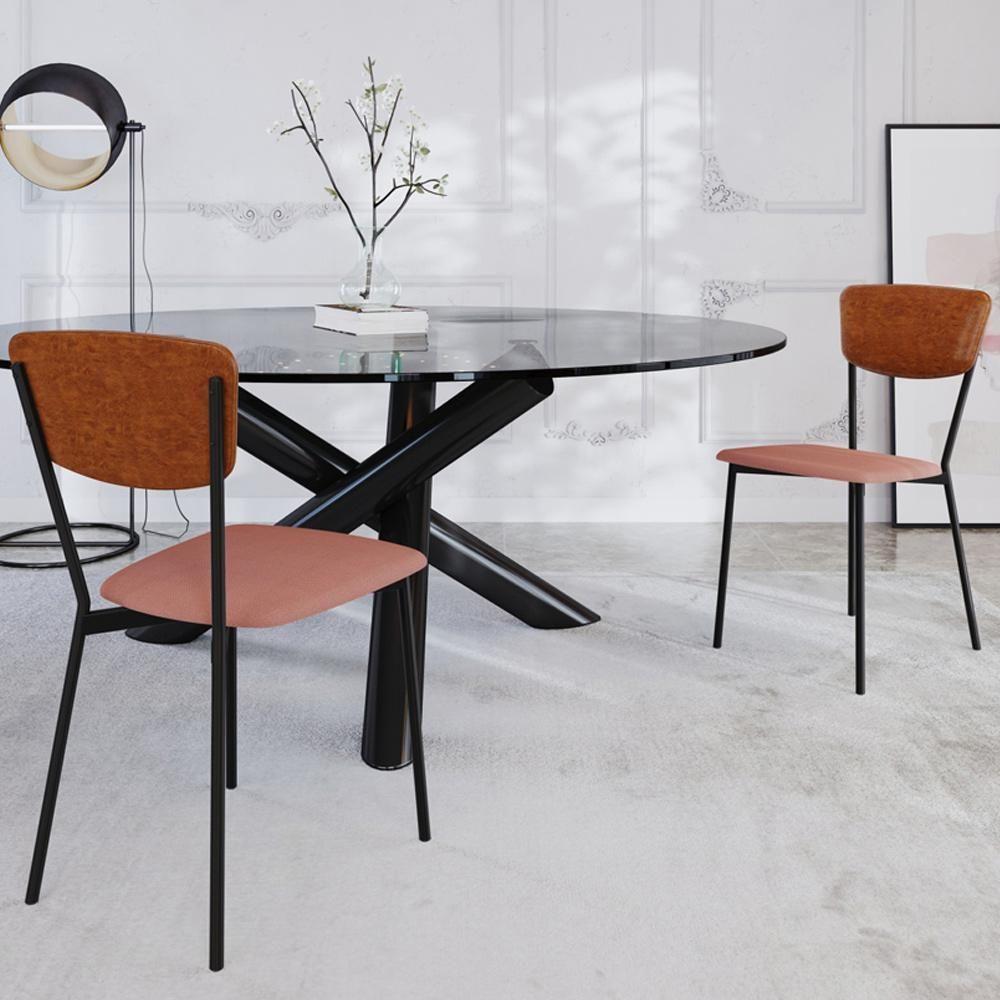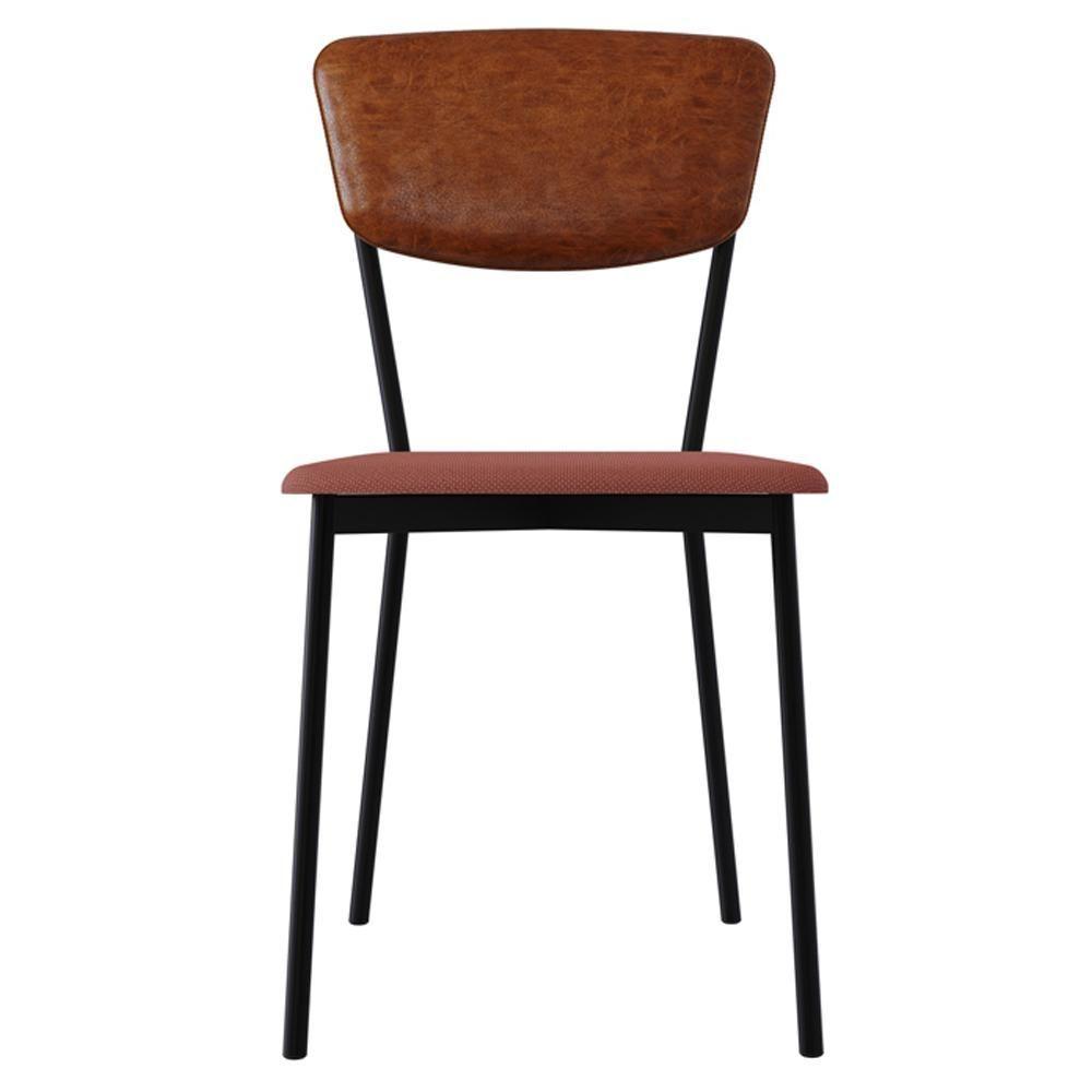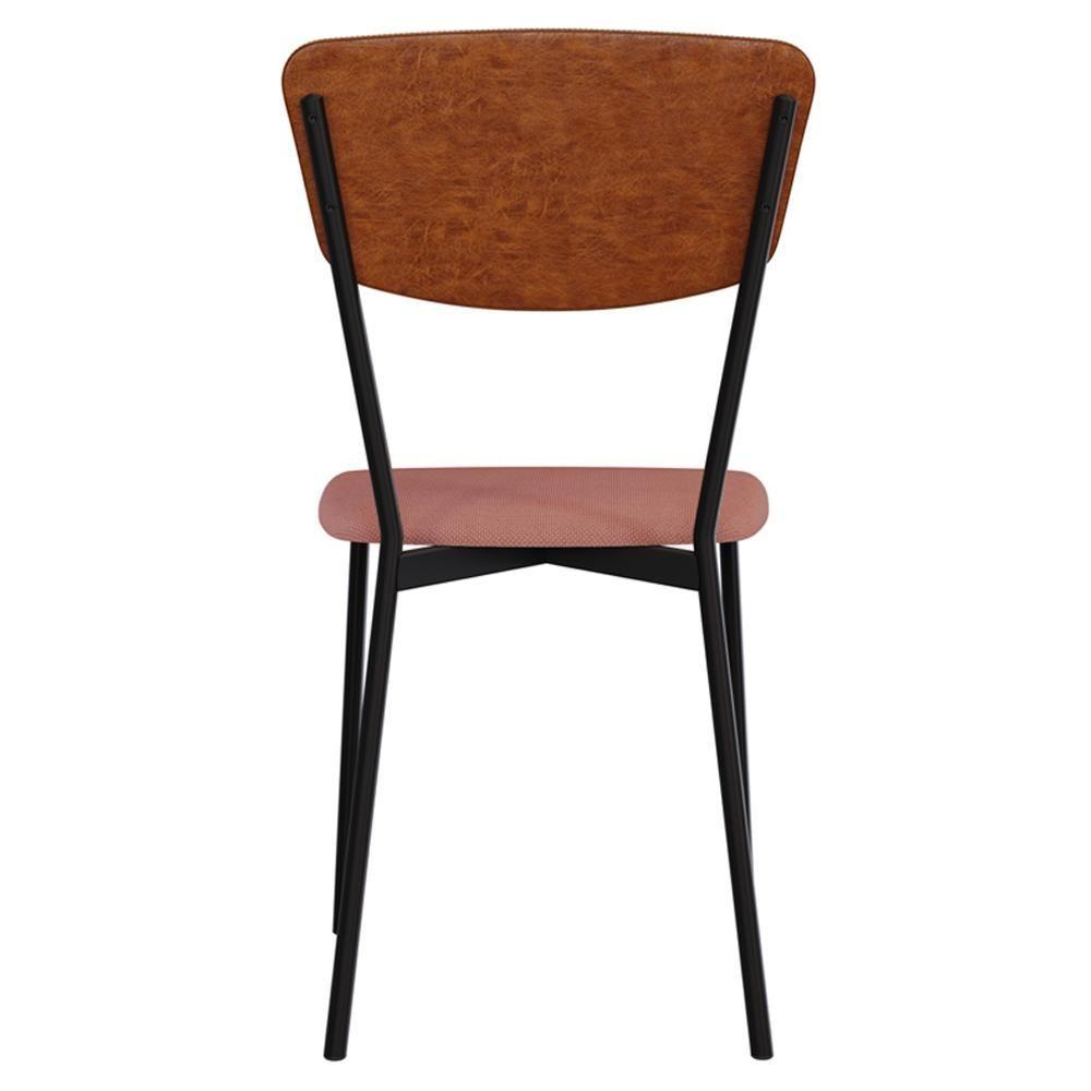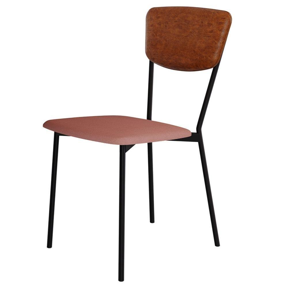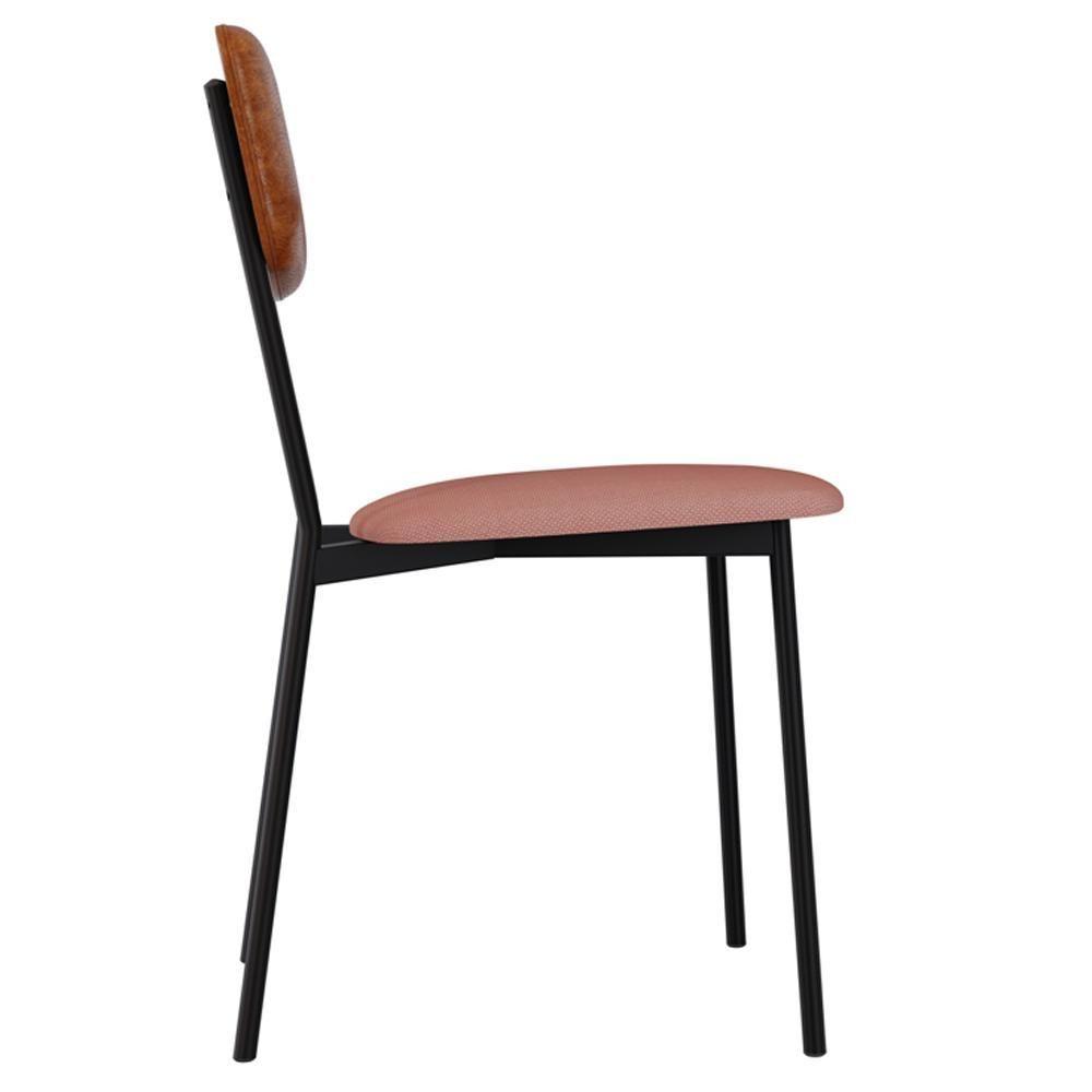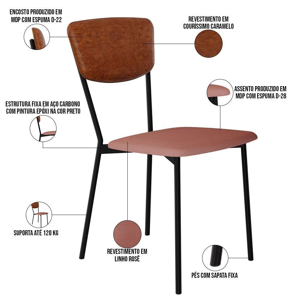 Cadeira Estofada Para Sala De Jantar Village Preto C01 Linho Rosê Courino Caramelo - Lyam Decor