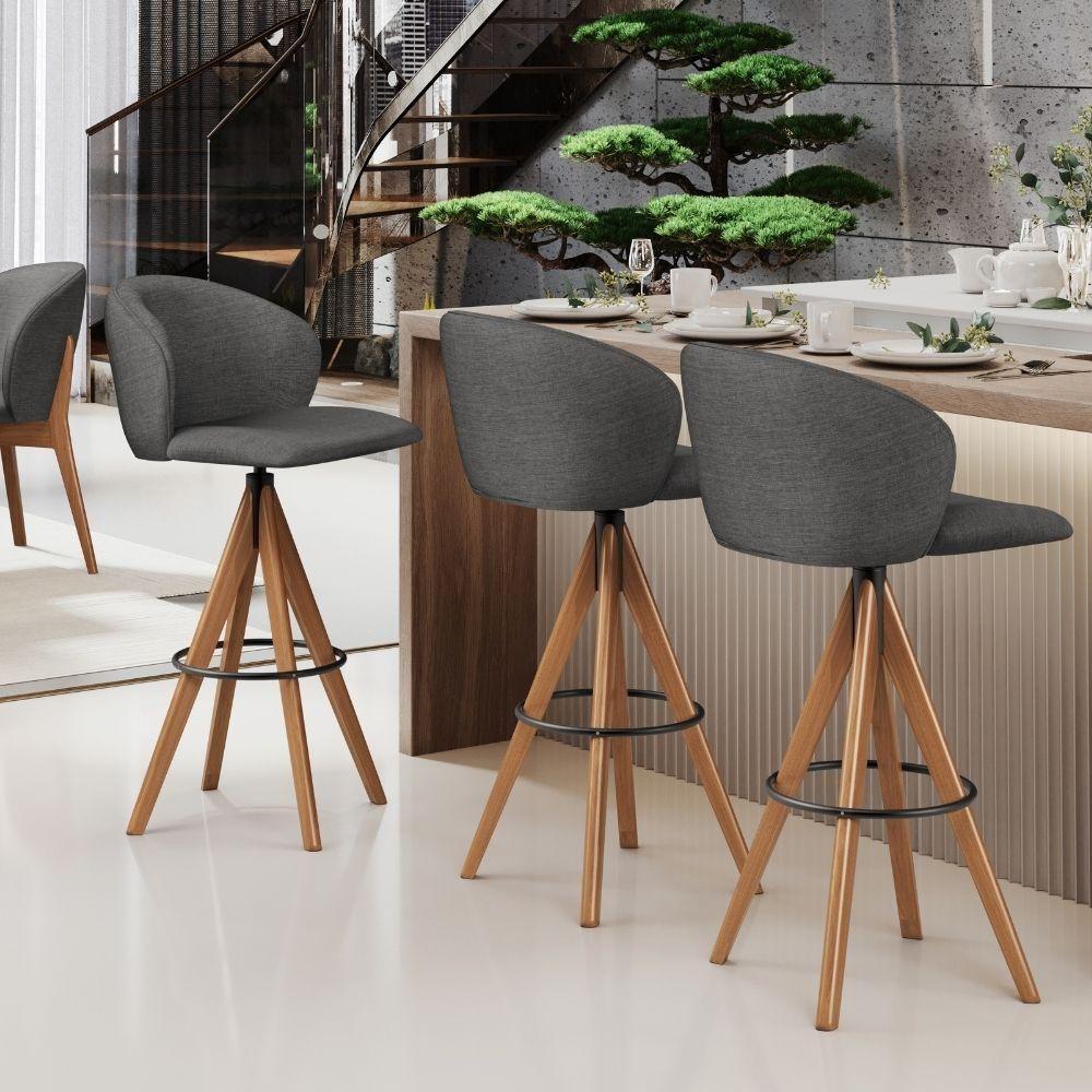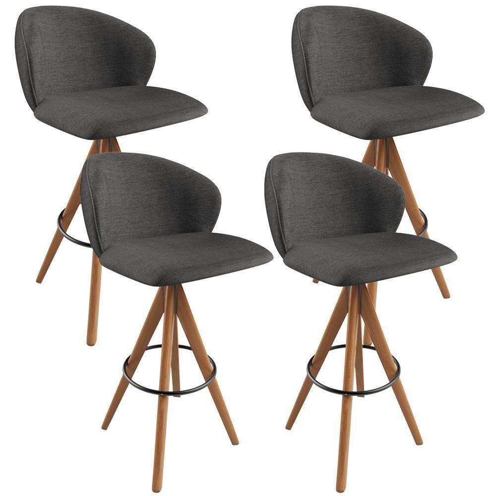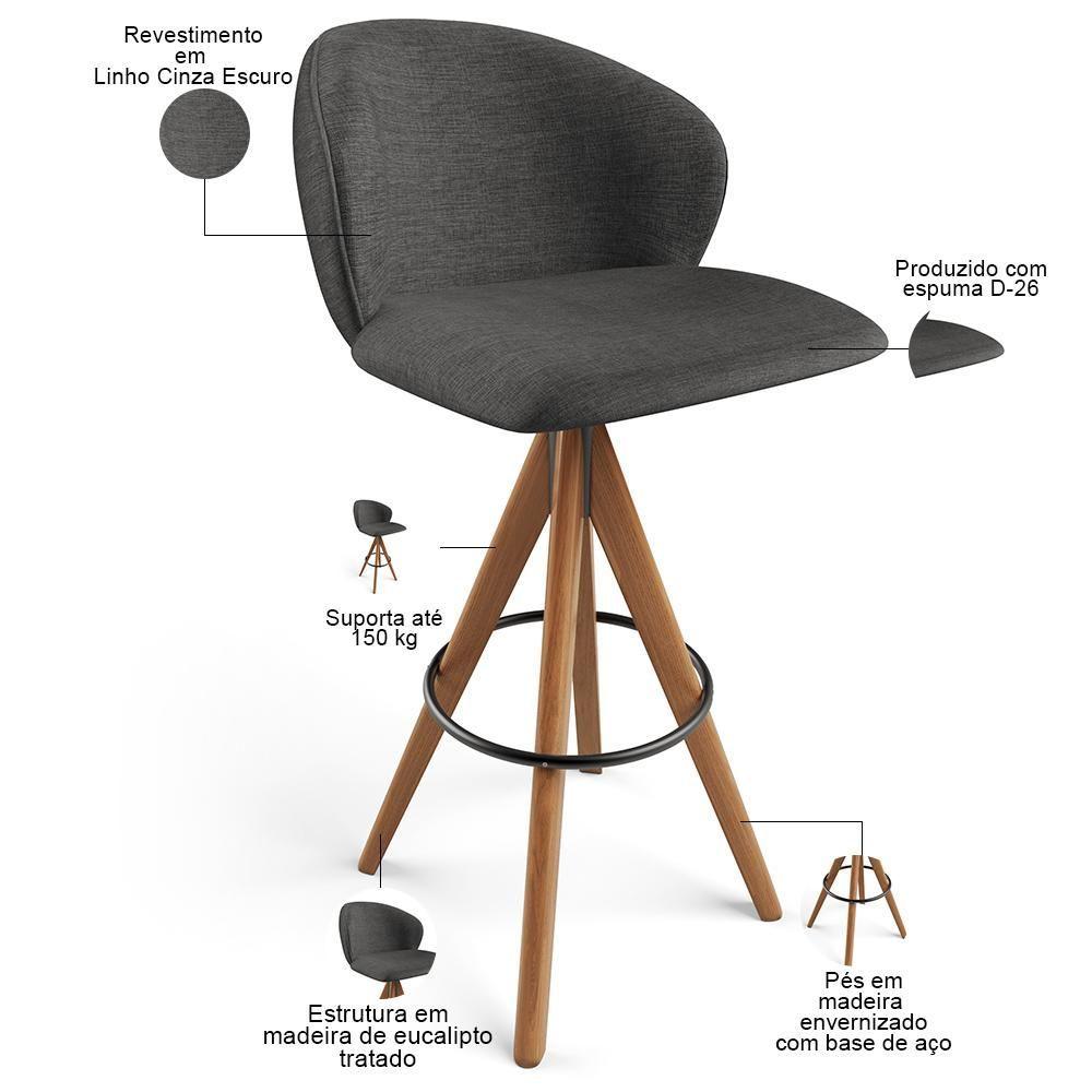 Kit 04 Banquetas Alta Bar Cozinha Sala De Jantar Bar Mia L02 Linho Cinza Escuro - Lyam Decor