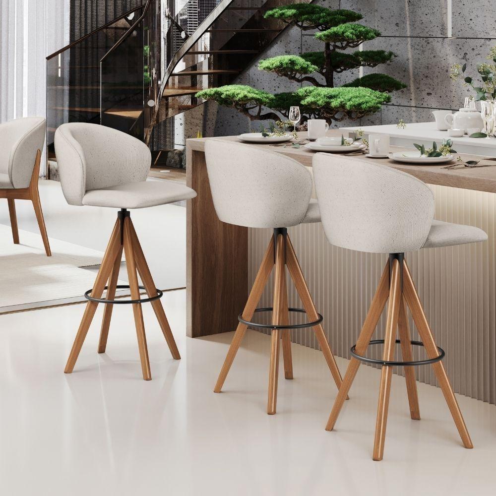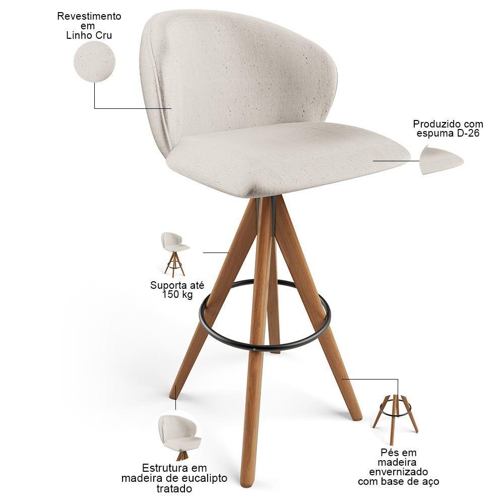 Kit 04 Banquetas Alta Bar Cozinha Sala De Jantar Bar Mia L02 Linho Cru - Lyam Decor