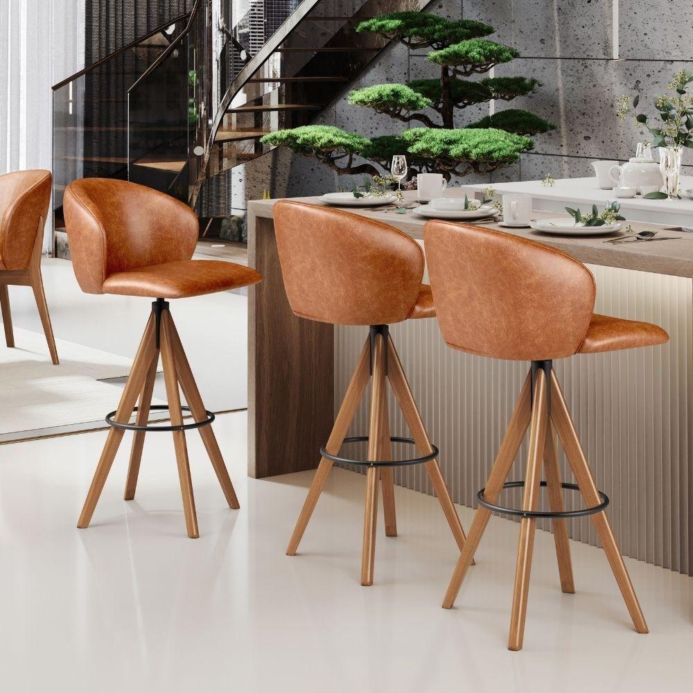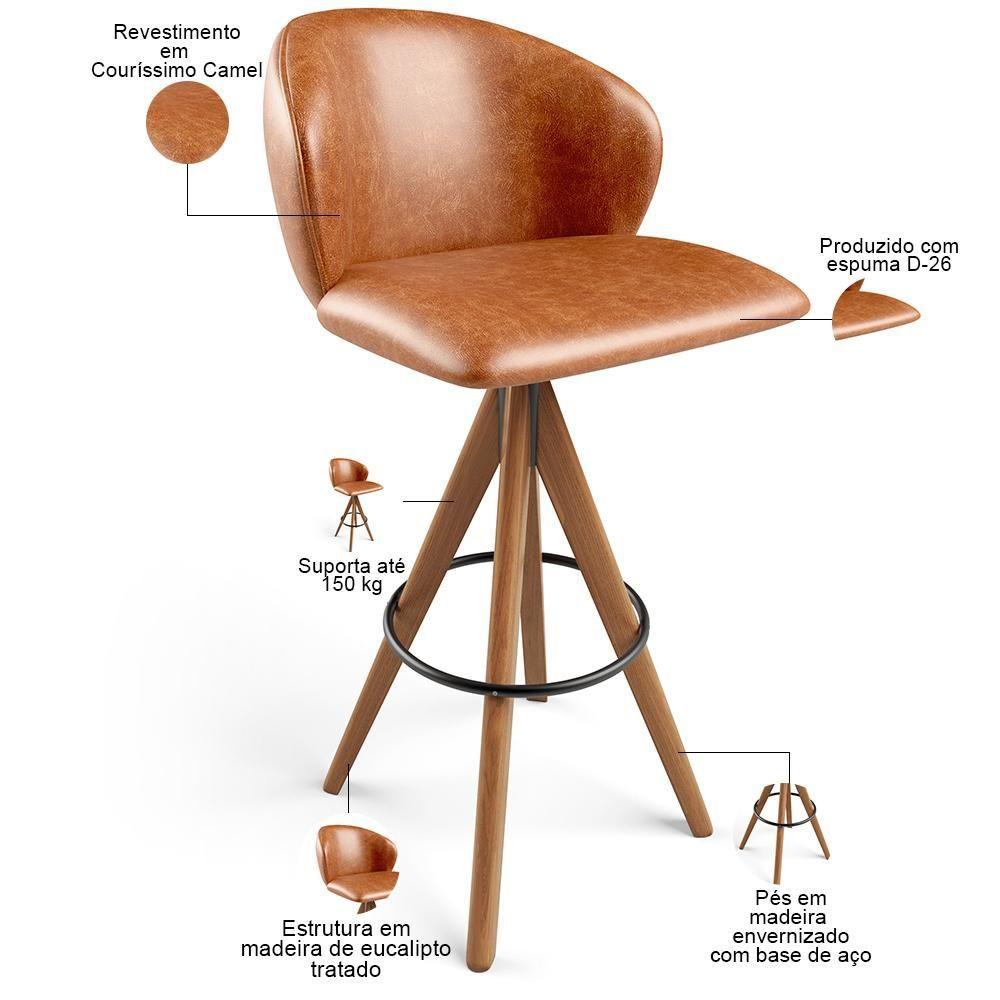 Kit 06 Banquetas Alta Bar Cozinha Sala De Jantar Bar Mia L02 Couríssimo Camel - Lyam Decor