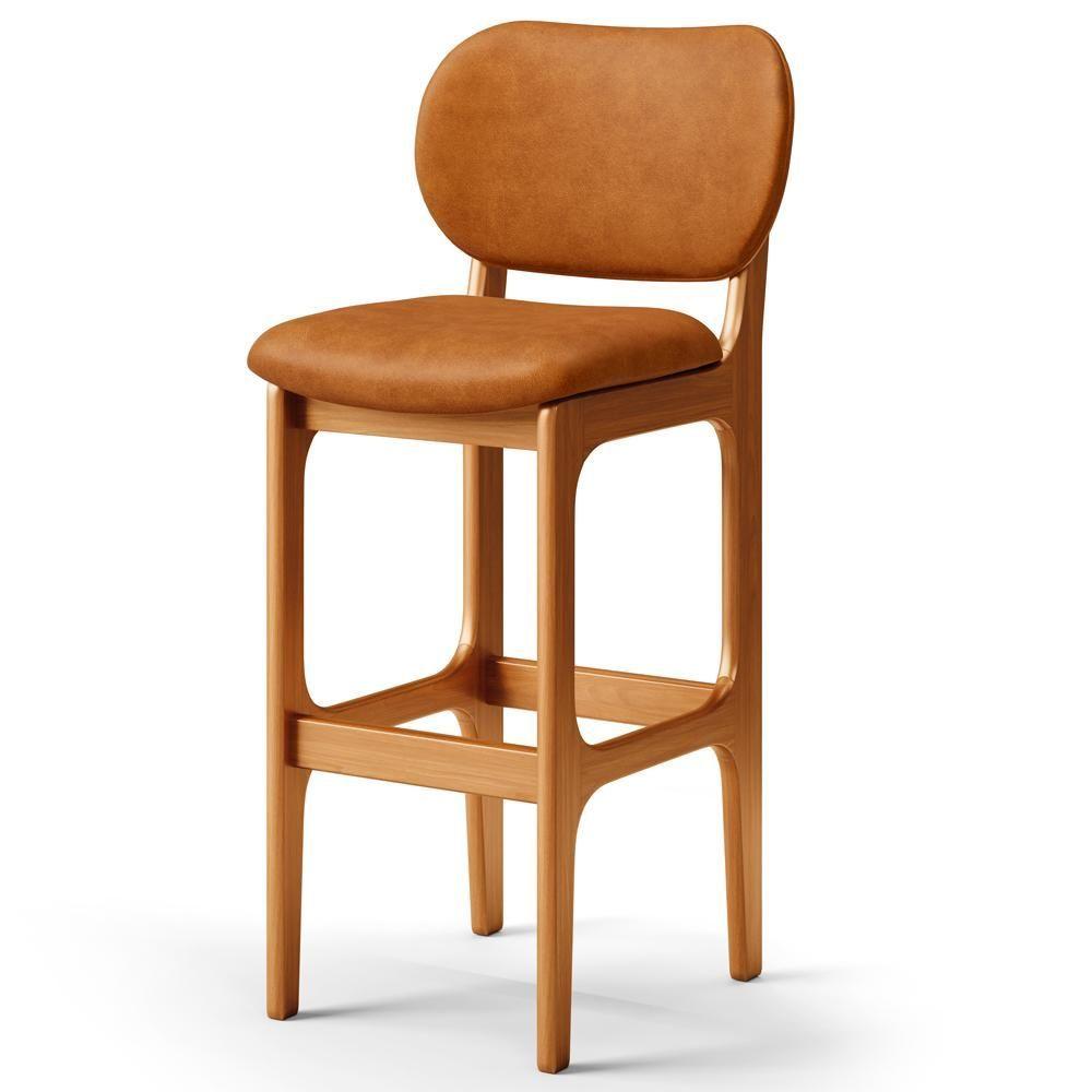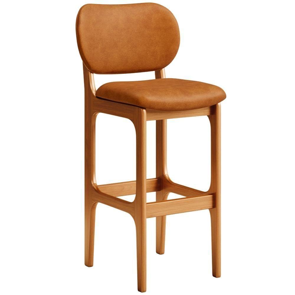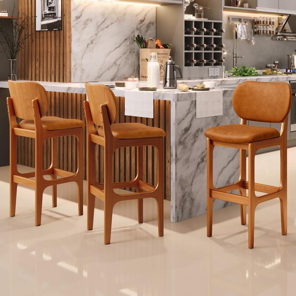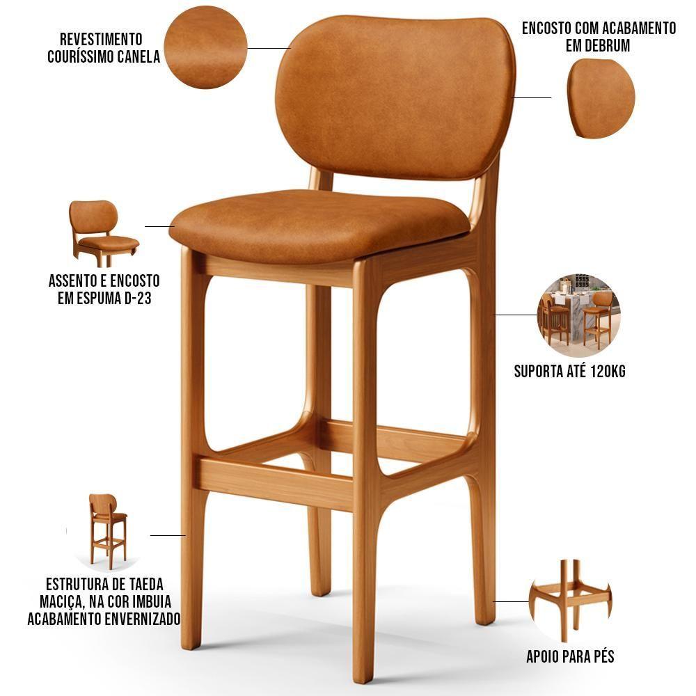 Kit 05 Banquetas Alta Bar Cozinha Sala Jantar Fixa Betta L02 Imbuia Couríssimo Canela - Lyam Decor