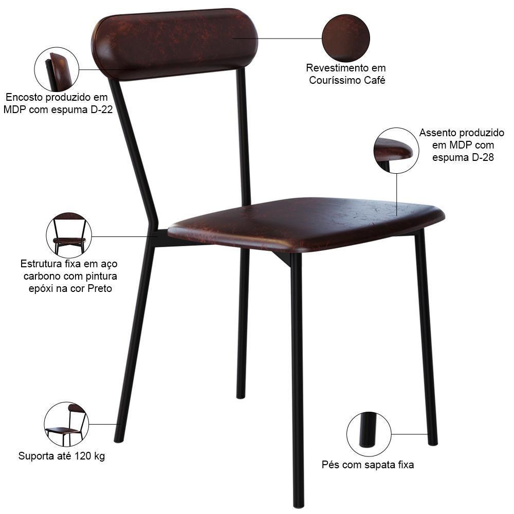 Cadeira Estofada Para Sala De Jantar Liora Preto C01 Courino Café - Lyam Decor