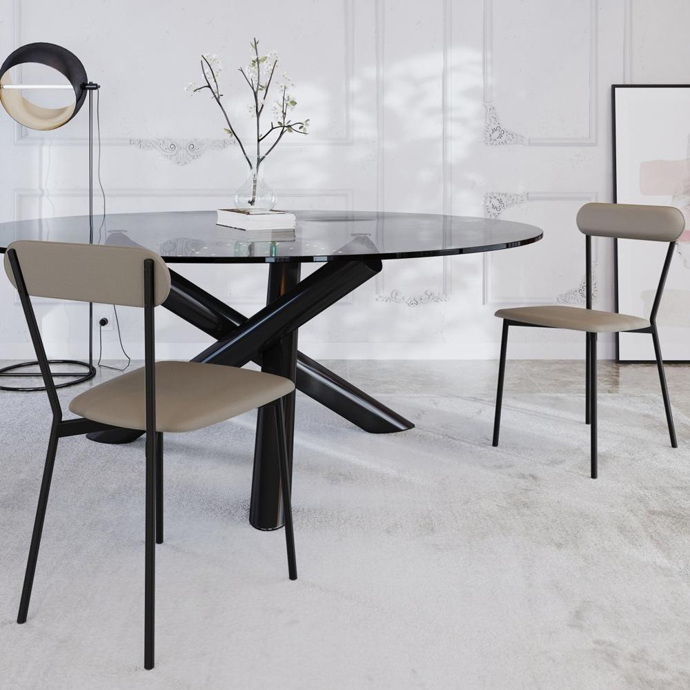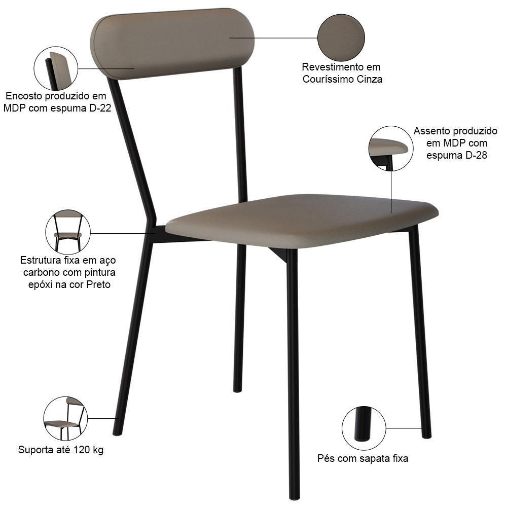 Cadeira Estofada Para Sala De Jantar Liora Preto C01 Courino Cinza - Lyam Decor