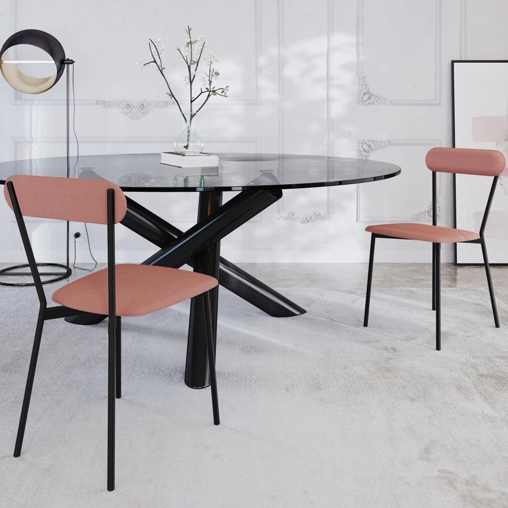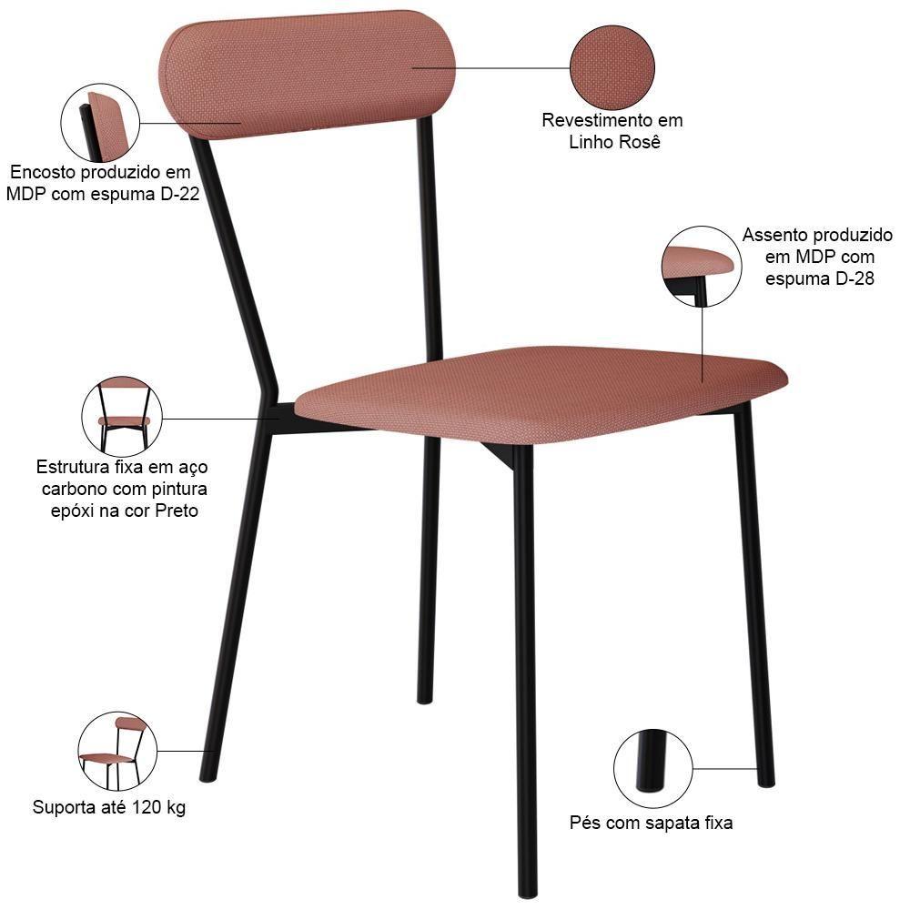 Cadeira Estofada Para Sala De Jantar Liora Preto C01 Linho Rosê - Lyam Decor