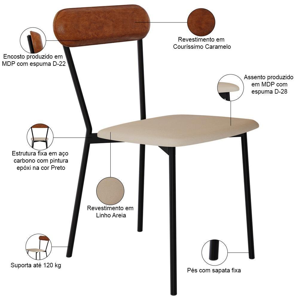 Cadeira Estofada Para Sala De Jantar Liora Preto C01 Linho Areia Courino Caramelo - Lyam Decor