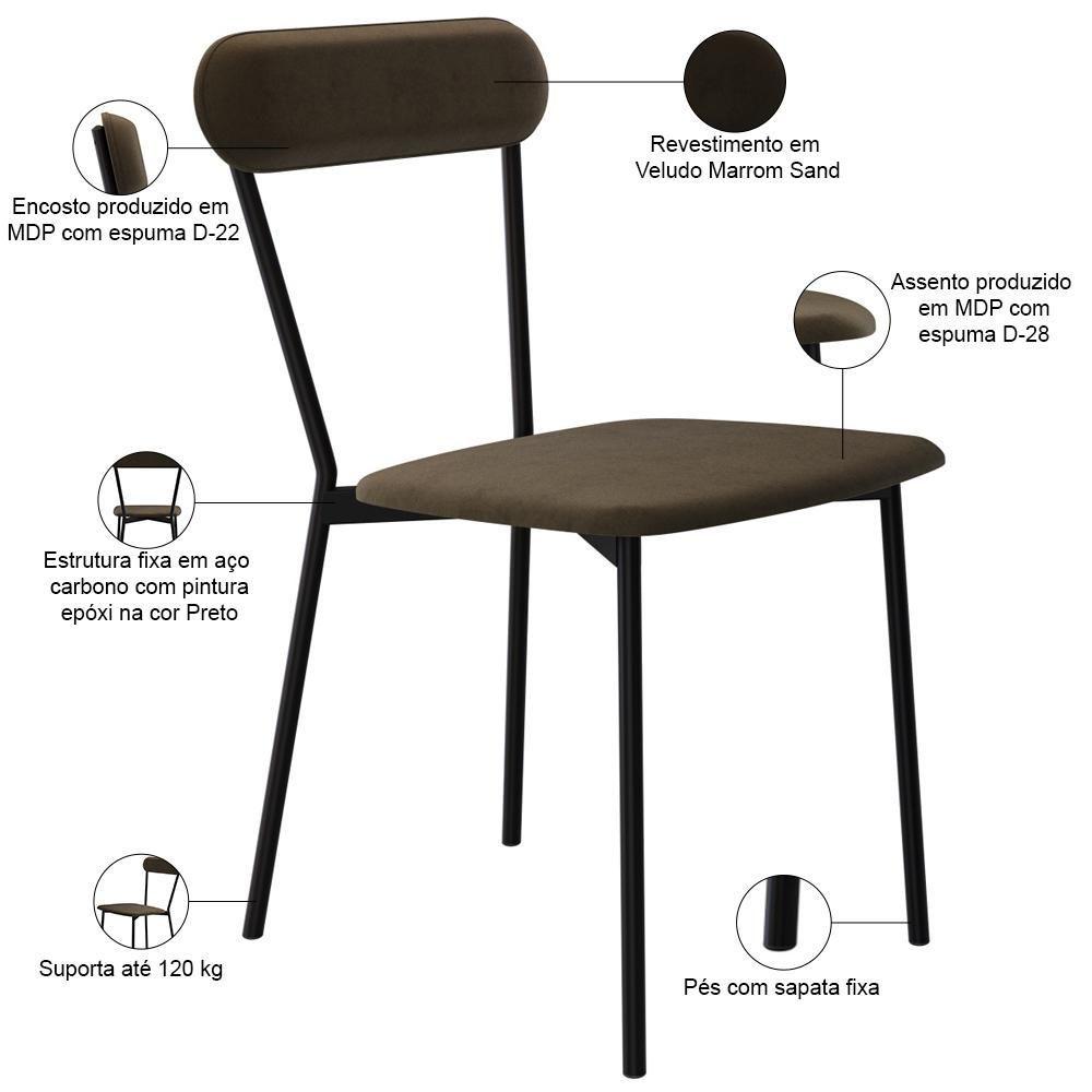 Cadeira Estofada Para Sala De Jantar Liora Preto C01 Veludo Marrom Sand - Lyam Decor