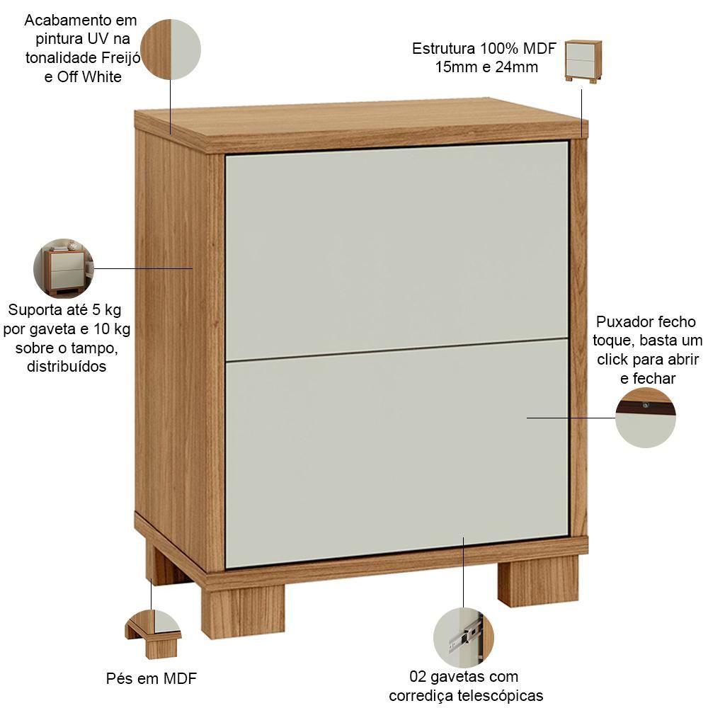 Mesa De Cabeceira 2 Gavetas 54cm Click D03 Freijó Off White - Lyam Decor