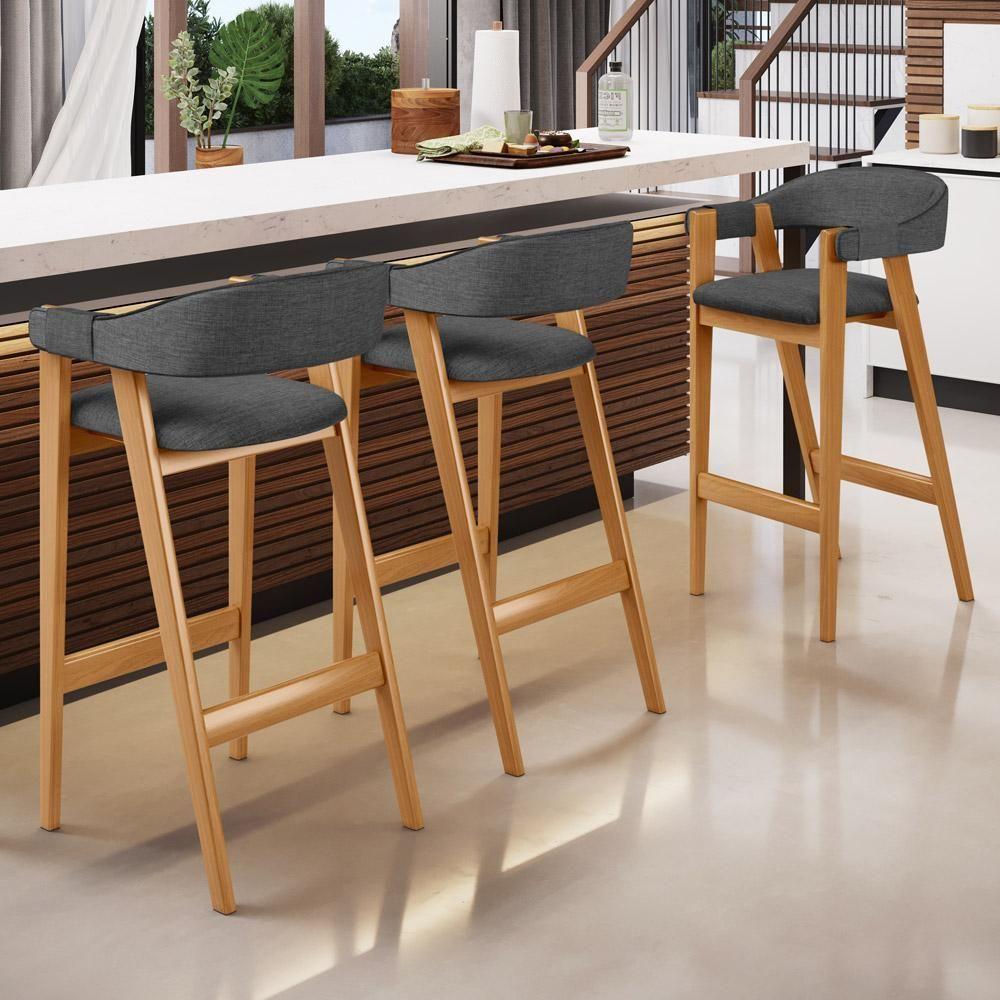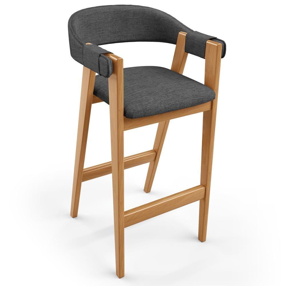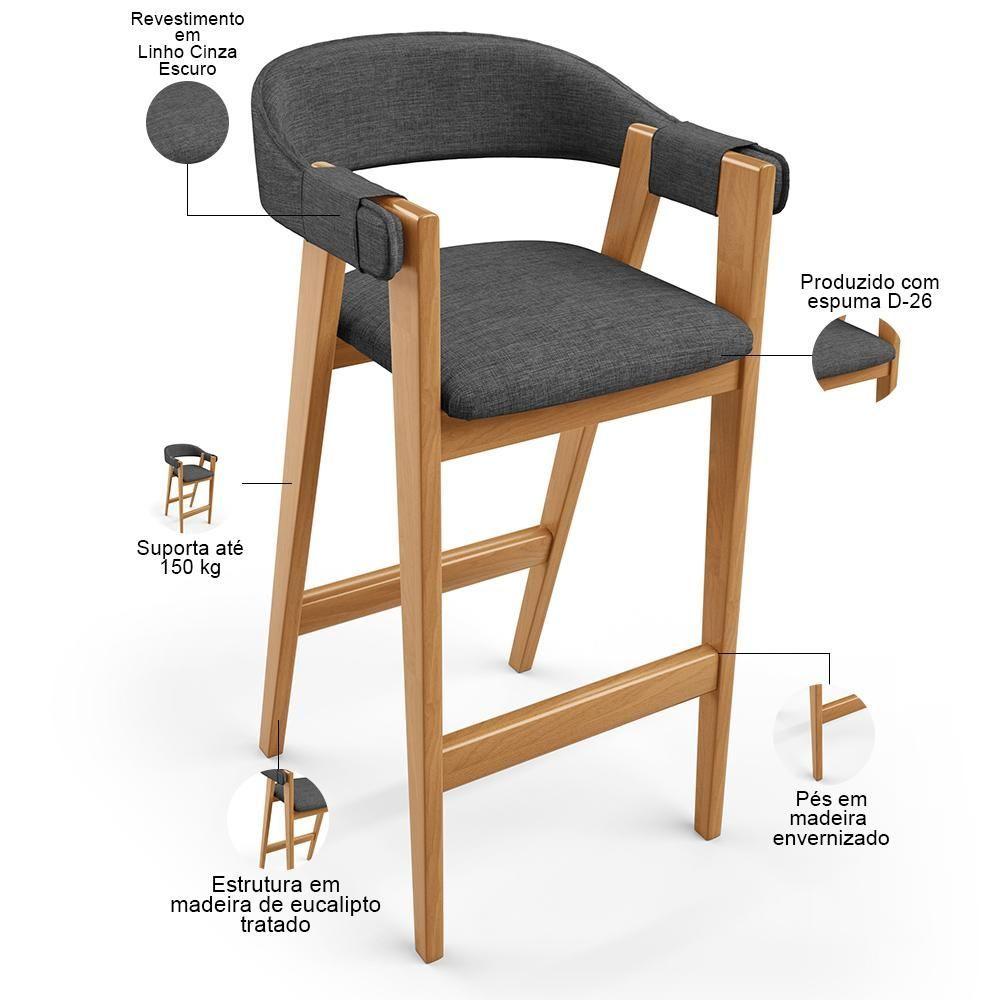 Kit 05 Banquetas Alta Bar Cozinha Sala De Jantar Bar Nadja L02 Linho Cinza Escuro - Lyam Decor