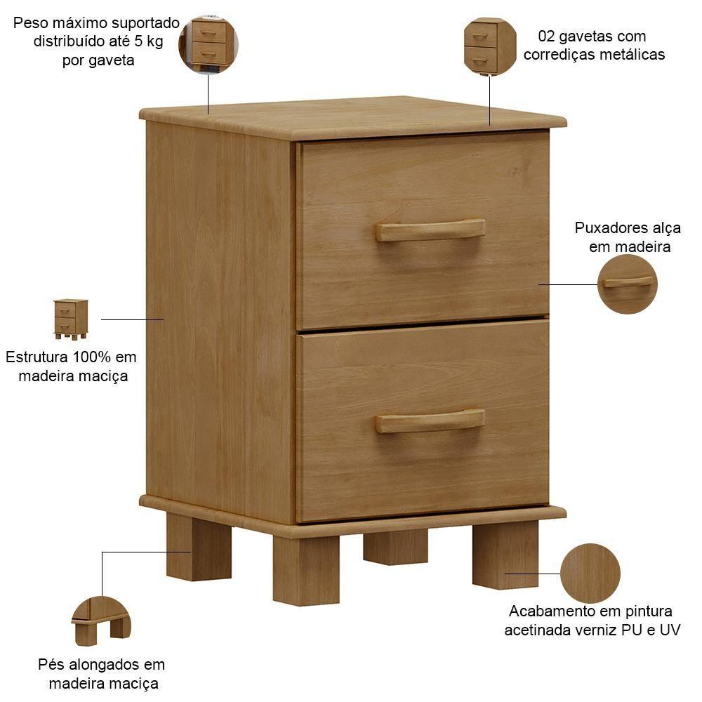 Mesa De Cabeceira 2 Gavetas Madeira Maciça Selena F06 Freijó - Lyam Decor