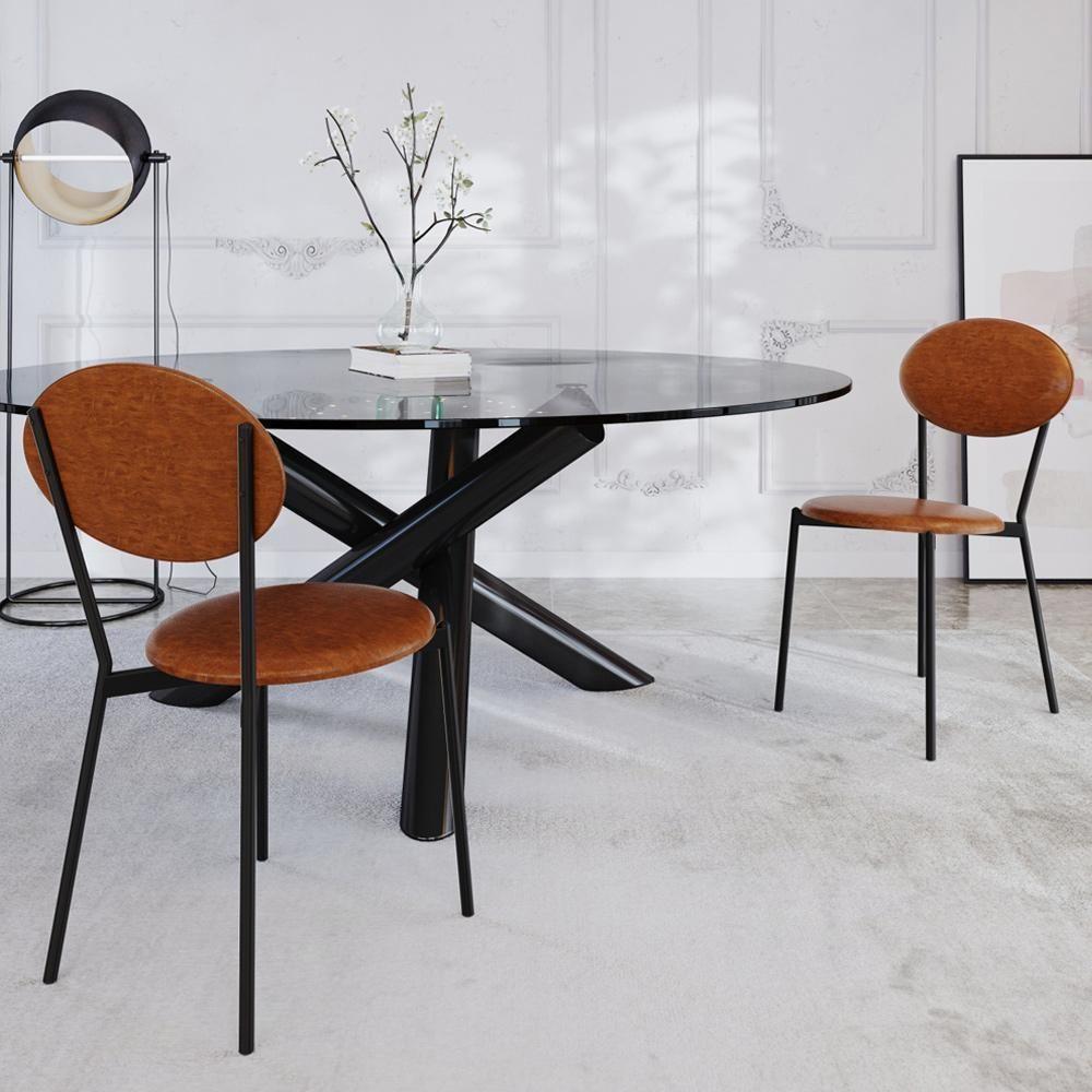 Cadeira Estofada Para Sala De Jantar Azuri Preto C01 Courino Caramelo - Lyam Decor