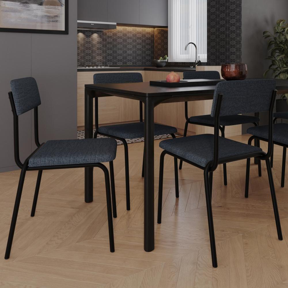 Kit 02 Cadeiras Estofada Para Sala De Jantar Sense Preto C01 Linho Cinza - Lyam Decor
