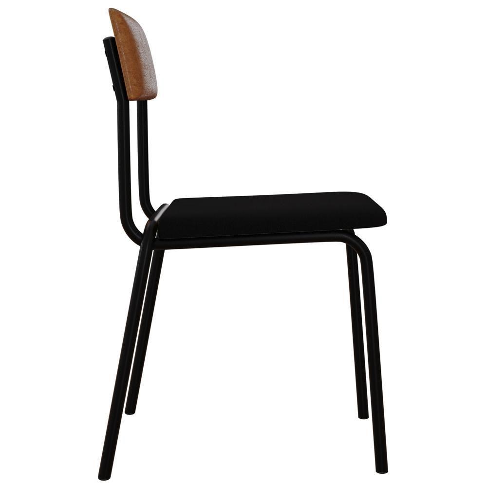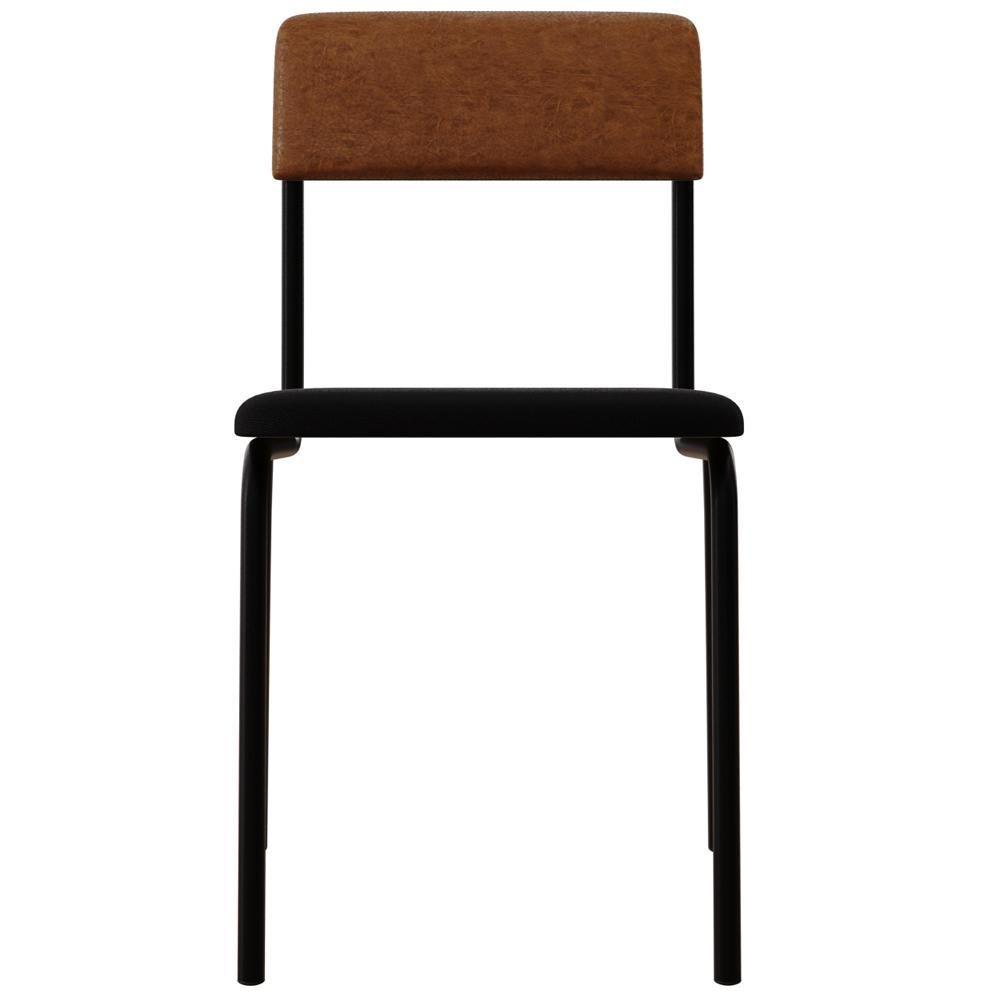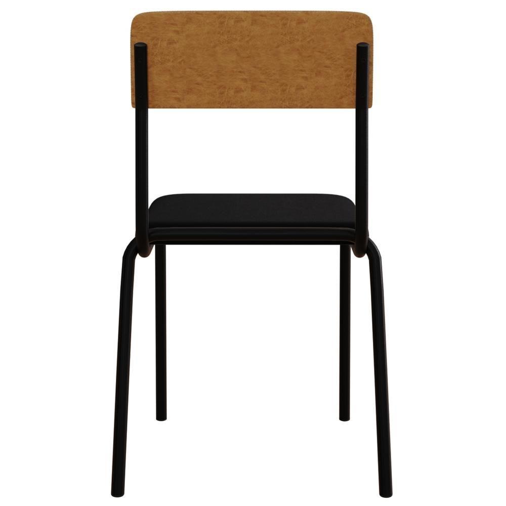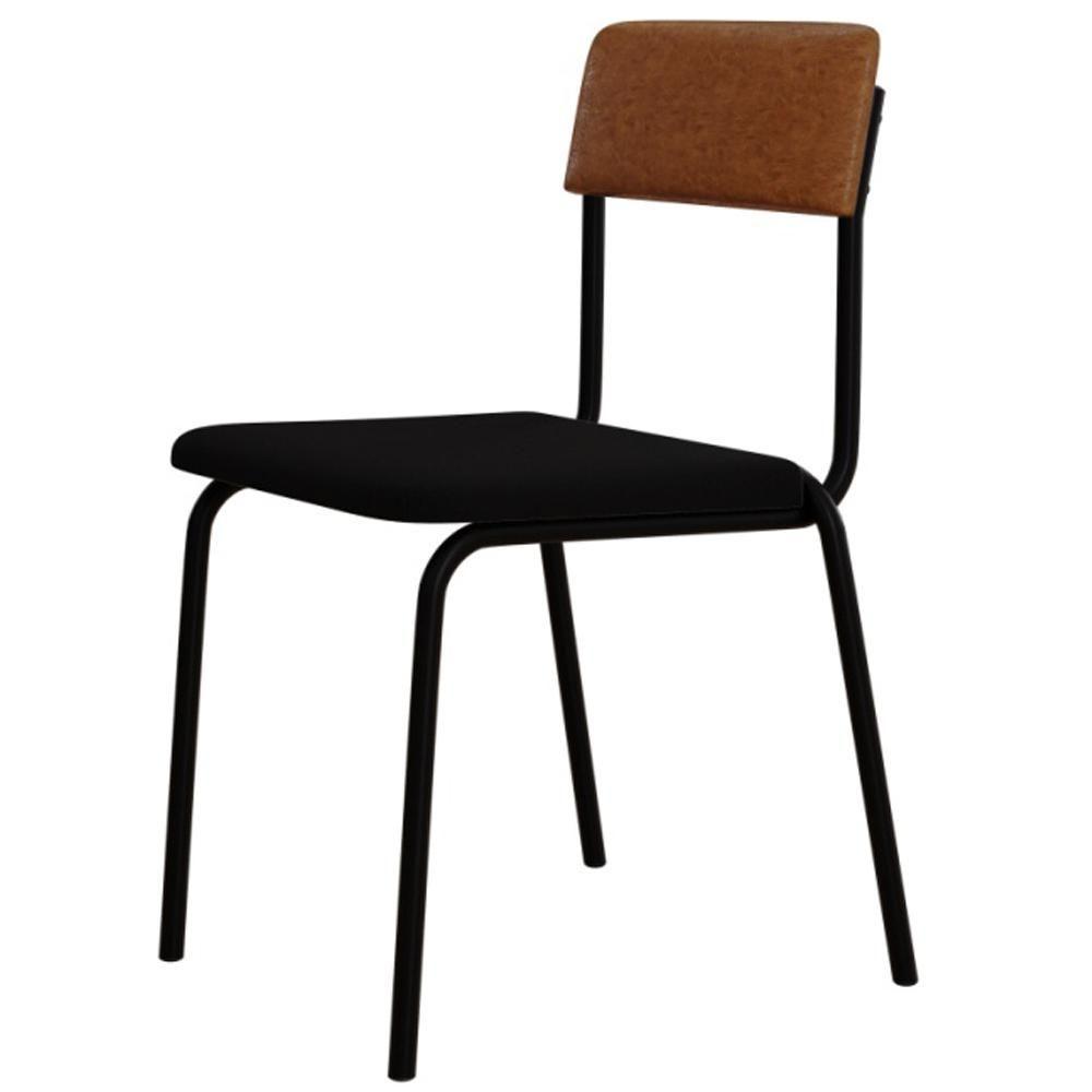 Kit 02 Cadeiras Estofada Para Sala De Jantar Sense Preto C01 Linho Preto Courino Caramelo - Lyam Decor