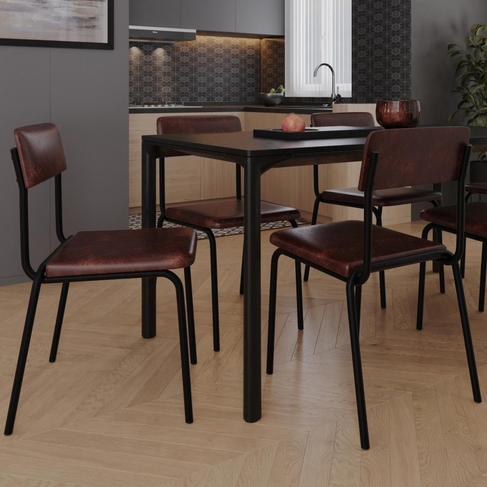 Kit 02 Cadeiras Estofada Para Sala De Jantar Sense Preto C01 Courino Café - Lyam Decor