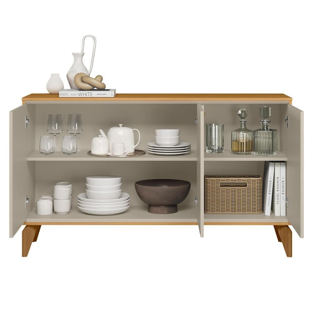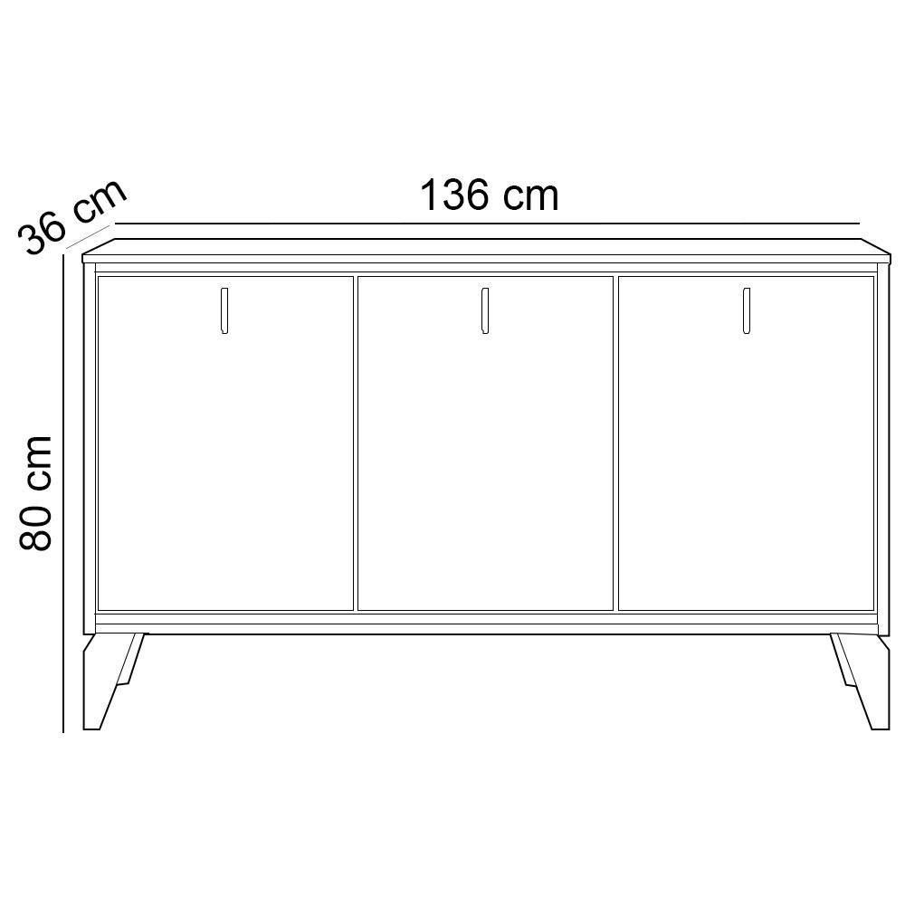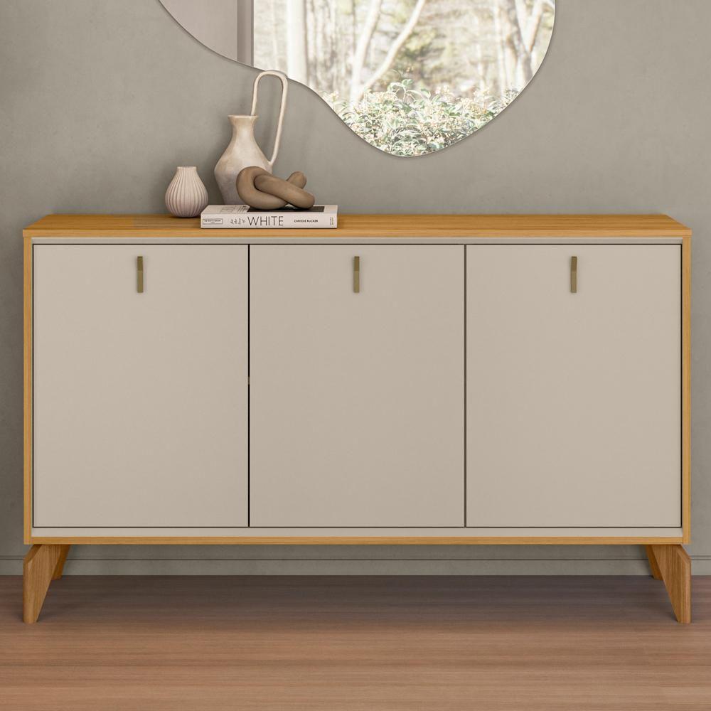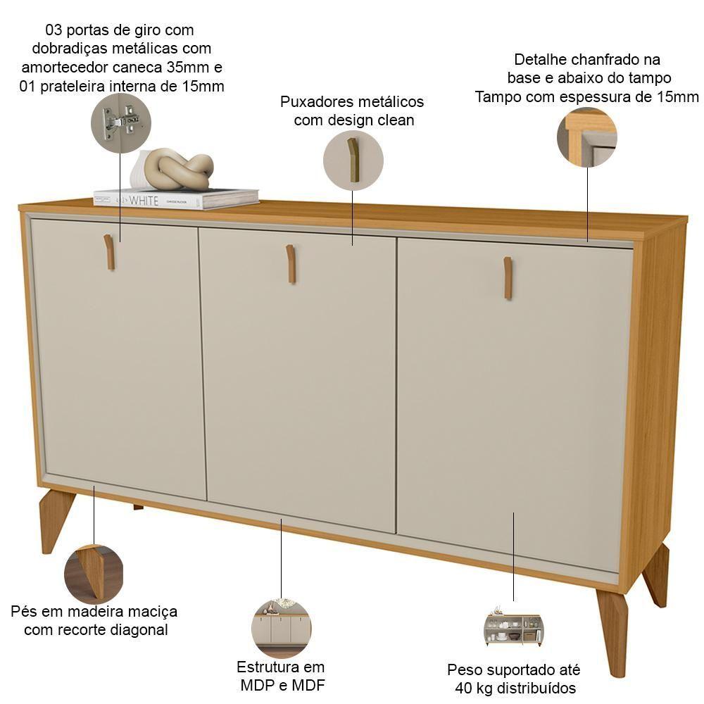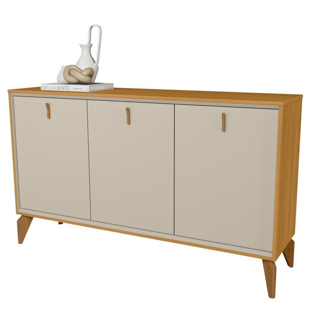 Aparador Buffet Para Sala De Jantar 3 Portas 136cm Urias L05 Tauari Off White Fosco - Lyam Decor