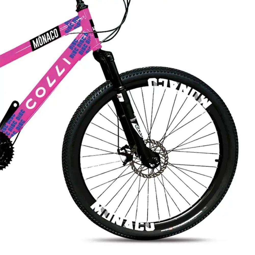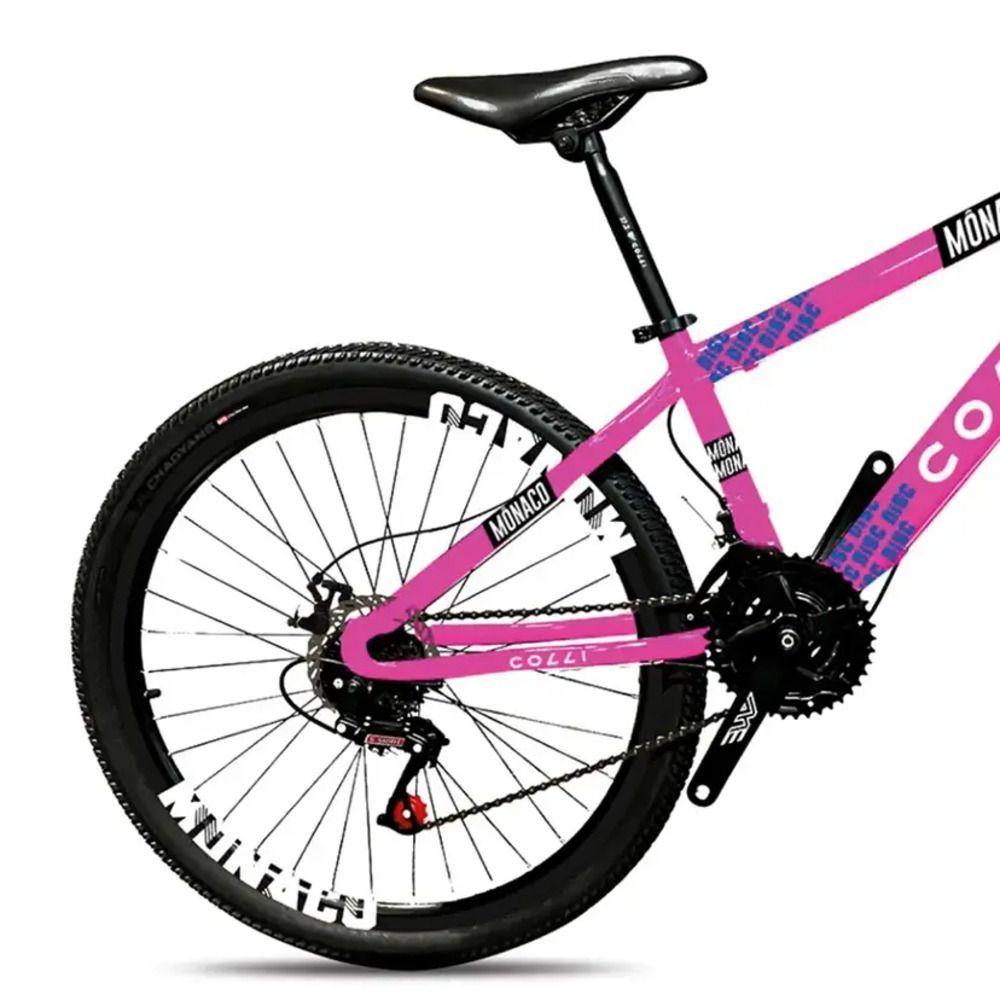Bic. Colli Monaco 21v - 230-19d Rosa NeonBicicleta Aro 26 Colli Monaco 21 Marchas Freio a DiscoA Bicicleta Colli M?naco ? pensada para proporcionar um excelente desempenho em diversas condi??es de terreno, combinando robustez, conforto e seguran?a. Ideal para ciclistas a partir de 12 anos, esta bicicleta suporta at? 100 kg, sendo perfeita para jovens e adultos que buscam aventuras ao ar livre ou um meio eficiente de . Confira mais detalhes:Qualidades de impressionar!A Bicicleta Colli M?naco vem equipada com alavancas rapid fire de 3/7 velocidades, permitindo mudan?as r?pidas e precisas. As rodas possuem aros 26 aero com 36 furos e freios a disco, garantindo uma frenagem eficiente e segura. A corrente fina de 1/2x3/32 e a suspens?o no garfo aro 26 com rosca para disco asseguram uma pedalada suave, mesmo em terrenos irregulares. O quadro aro 26 M?naco ? robusto e leve, perfeito para manobras e conforto. Os pneus oferecem ader?ncia e estabilidade.