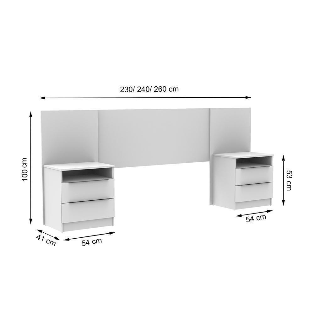 Cabeceira Extensível Branco com 2 Criados Madesa