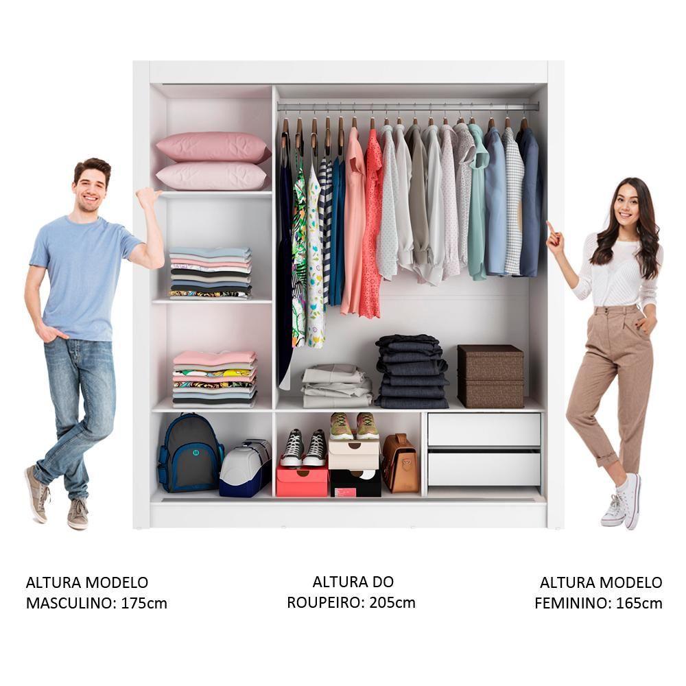 Guarda-roupa Casal Madesa Lyon 3 Portas de Correr com Espelhos 2 Gavetas BrancoO Guarda-Roupa de Casal com melhor custo benefício do mercado. Ferragens de qualidade, duas portas com espelhos, cabideiro metálico e pintura em Poliéster Protetor que confere durabilidade e resistência. As portas de correr possuem trilho superior e inferior em alumínio e sistema de deslizamento suave garantindo melhor funcionamento.Total aproveitamento interno levando em conta o uso de duas pessoas. São duas gavetas internas na tonalidade branca com corrediça metálica, muitos nichos que facilitam a organização de roupas, calçados e acessórios. O tubo cabideiro é muito resistente e possui espaço para roupas longas.O acabamento interno e externo é branco. O processo é feito em Pintura Poliéster de alta resistência que confere maior durabilidade ao produto. A pintura é ecológica, isenta de gases que vão para a atmosfera.Cor: BrancoGarantia: 3 Meses Contra Defeitos de FabricaçãoDimensões - Altura: 205 CmDimensões - Largura: 170 CmDimensões - Profundidade: 46 CmProduto: Guarda-roupaMarca: MadesaPeso Aproximado: 103 KgTonalidade: BrancoMaterial: MdpRbn: Móveis/móveis de QuartoItens inclusos:- Três (3) prateleiras totalizando cinco (5) nichos- Duas (2) gavetas internas brancas- Um (1) cabideiro grande- Três (3) portas de correr sendo uma (1) de madeira e duas (2) com espelhos e puxadores em PVC