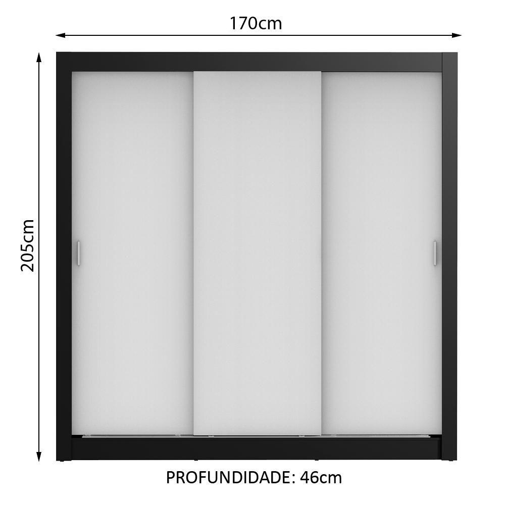 Guarda Roupa Casal Lyon 3 Portas de Correr 2 Gavetas MadesaCaracterísticas:- O Guarda-Roupa Lyon da Madesa conta com ferragens de qualidade, portas de correr com trilho superior e inferior em alumínio e sistema de deslizamento suave garantindo melhor funcionamento.- O aproveitamento interno é ideal para um casal. - São duas gavetas com corrediça metálica, além de vários nichos que facilitam a organização de roupas, calçados e acessórios. - O tubo cabideiro é metálico, muito resistente e possui espaço para roupas longas.- O acabamento mistura os tons branco e preto e é feito com a Pintura Poliéster de 7 camadas exclusiva da Madesa, um método ecológico e que confere maior durabilidade ao produto.Especificações Técnicas:- Marca: Madesa- Modelo: Lyon- Cor: Branco- Material: Mdp- Material Para Filtro: Mdp- Itens inclusos: Três (3) prateleiras totalizando cinco (5) nichos; Um (1) cabideiro grande; Duas (2) gavetas internas; Três (3) portas de correr de madeira e dois (2) puxadores em PVC- Dimensões aprox. do produto: Altura: 205cm; Largura: 170cm; Profundidade: 46cm- Peso Aproximado: 87 Kg- Garantia: 3 meses